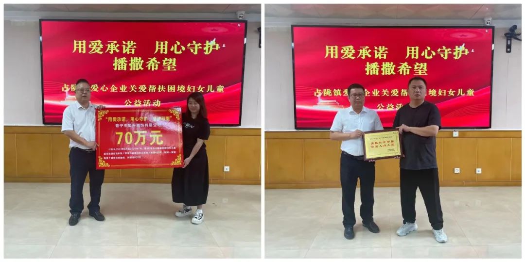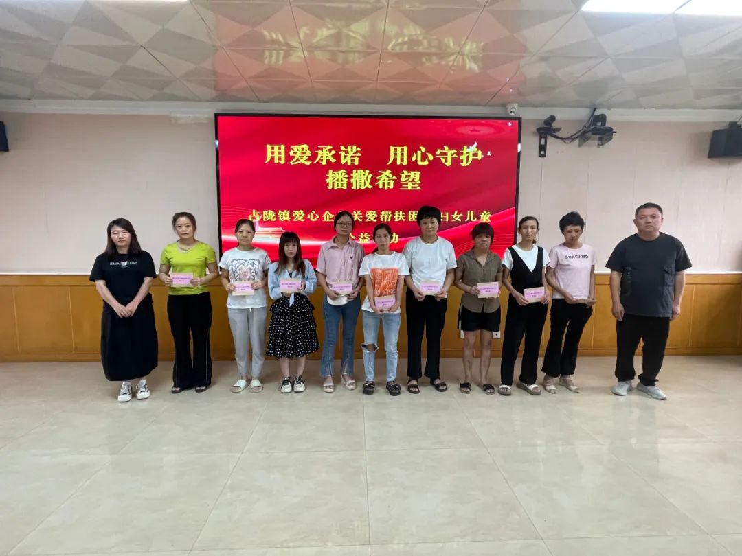 为深入贯彻落实习近平总书记关于强化困难群体基本生活保障以及关于未成年人保护工作的重要指示批示精神,全力做好困境妇女儿童的帮扶救助工作,营造爱心暖心的浓厚社会氛围。8月13日,占陇镇携手爱心企业奥升服饰有限公司开展关爱帮扶困境妇女儿童公益活动。占陇镇党委书记章炎雄,党委副书记、镇长傅敏林,副镇长、镇妇联主席陈洁玲;奥升服饰有限公司董事长陈文升,总经理陈琼华;部分村书记、分管妇女儿童村干部以及困境家庭代表参加活动。