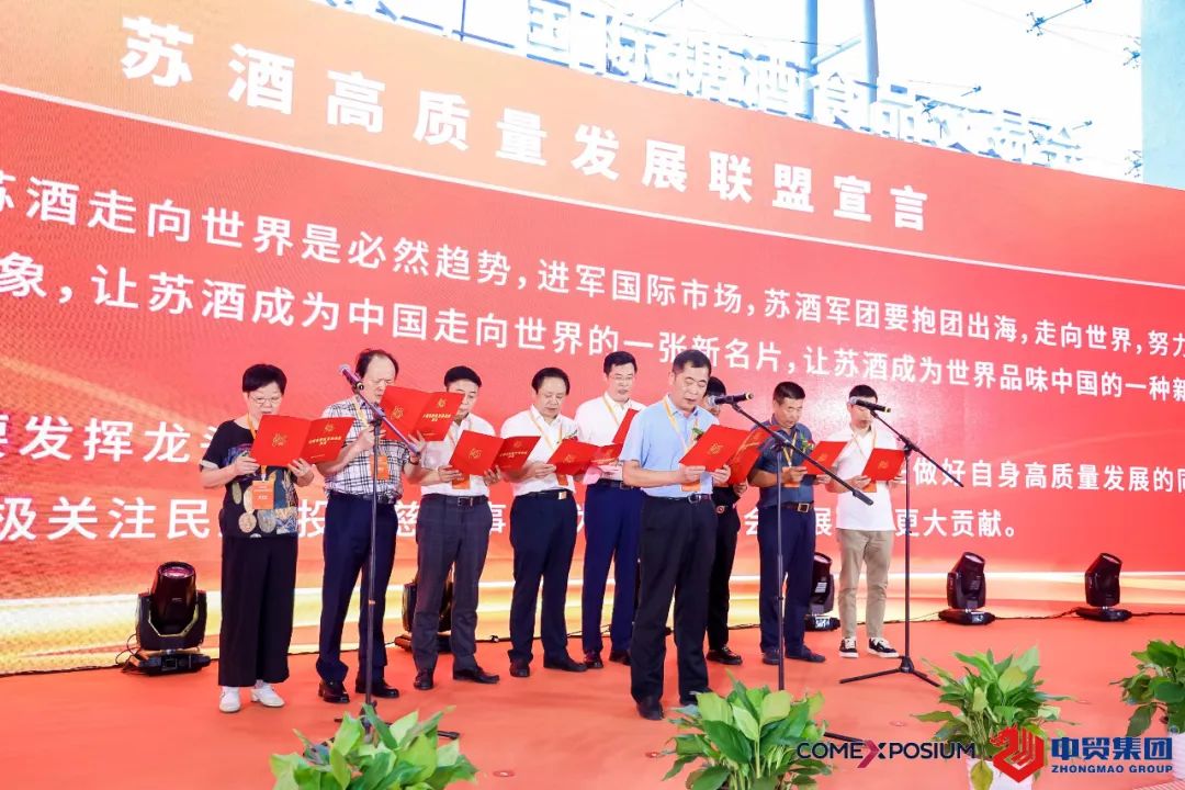 “胸怀千秋伟业,恰是百年风华”。在活动现场,苏酒高质量发展联盟成员企业代表集体宣读“苏酒高质量发展联盟宣言”,成员们隆重宣誓:站在第二个一百年奋斗目标新起点上,我们苏酒高质量发展联盟全体成员,决心牢记总书记“在推进中国式现代化中走在前、做示范”的嘱托,实施省委、省政府“振兴苏酒”战略,在省工信厅、省商务厅、中国酒业协会、中国酒类流通协会的指导下,为江苏酒业高质量发展作出新贡献。并承诺,永葆初心、牢记使命,为真正实现苏酒“香飘天下”,乘风破浪、扬帆远航。