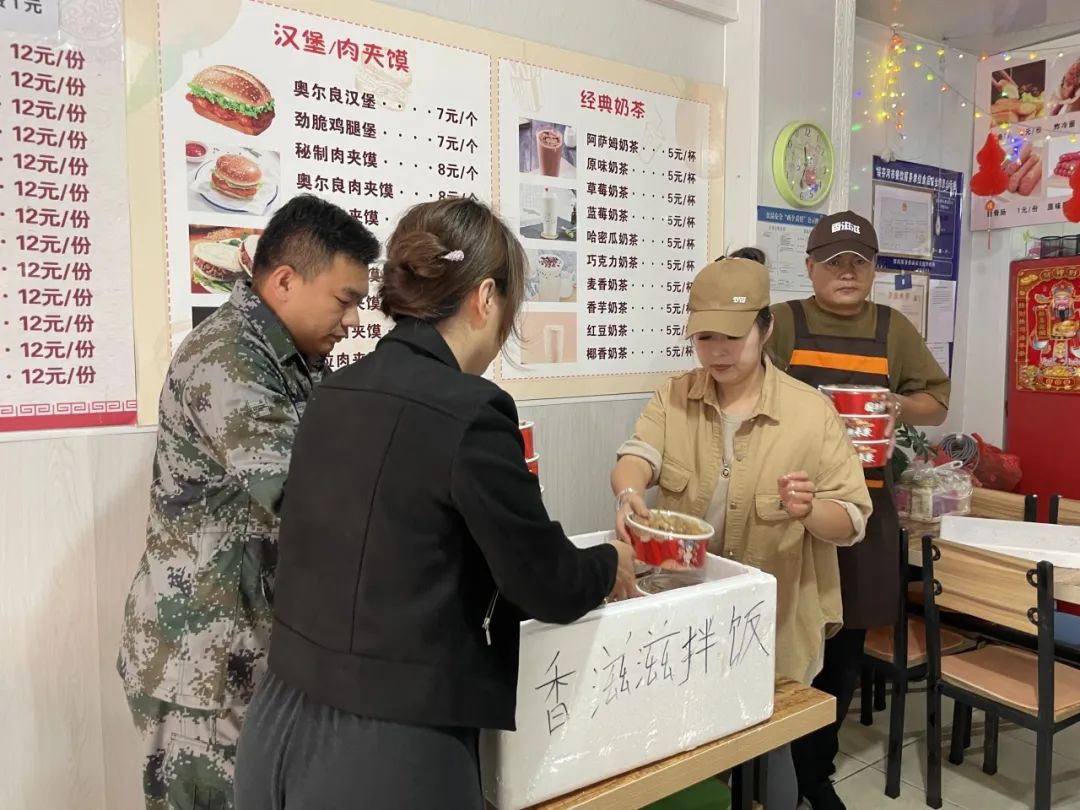 香滋滋烤肉拌饭负责人说“他们镇里工作人员太不容易了,不分昼夜排查隐患,就是为了保护我们的安全。保护家园共筑抗洪救灾的坚强防线,是我们全市人民义不容辞的责任!我就想尽自己的微薄力量,让他们吃上一口热乎饭,今后我们将积极践行社会责任,奉献爱心,与绥芬河镇一起携手抗汛,共渡难关。”