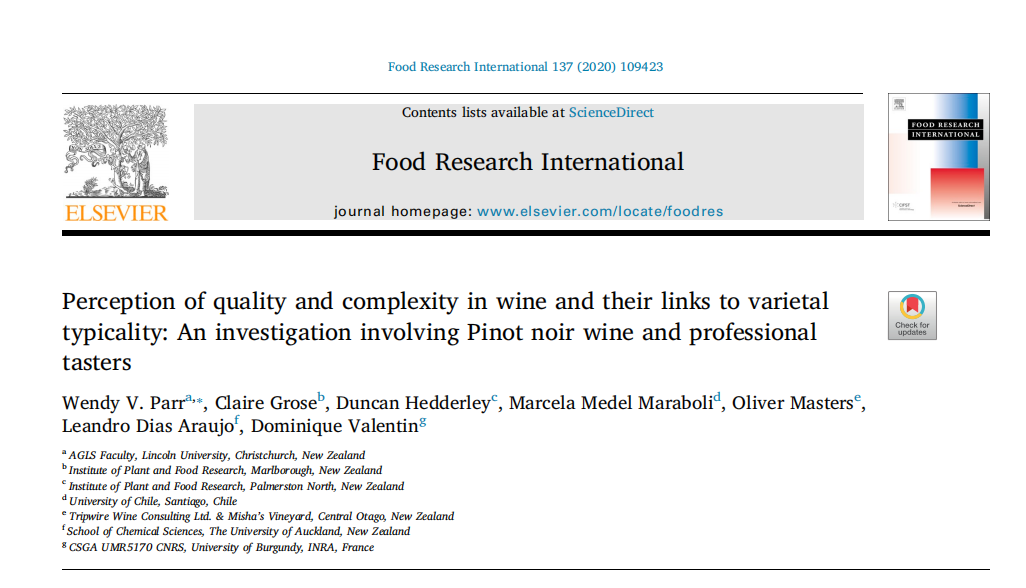 对葡萄酒质量和复杂性的感知及其与品种典型性的联系:对黑比诺葡萄酒和专业品评者的调查