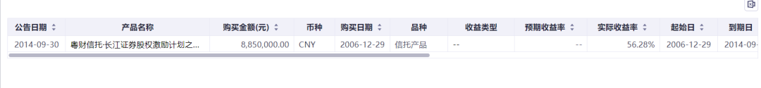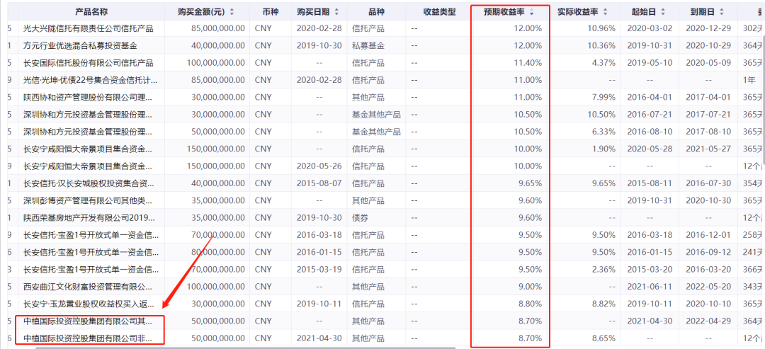 中青旅也没有未到期的理财产品,且 以前购买的理财产品,其收益率都在5%以内。因此完全没有暴雷风险。西安旅游挺有意思的,虽然现在已经没有未到期的理财产品,但前几年可是很热衷于购买高收益理财产品。见下图。别说5%了,它还买了不少8%以上的产品。这其中还有两个中植系产品。只能说,它是神操作,在地产债出事前全部抛售了。不过,这些产品中可能有一些会投资于股权或者衍生品,所以预期收益率才能这么高。金陵饭店是酒店行业里最热衷于多元化的。但它的利润中,最大头还不是酒店以外的其他多元化业务,而是理财收入。今年上半年,它持有6.5亿元的信托产品。理财收入是1106万,归母利润是3118万。占比达到了三成。这其实是企业效率低下的一种反映,他们的项目投资收益率太低了。他们的信托产品风险应该不大。因为收益率并不离谱。不过它全部买江苏信托的产品,似乎就是把鸡蛋装一个篮子里了。万一这家公司出事,风险就会极大。总而言之,我们观察了一圈,发现旅游和酒店行业中上市公司踩雷的风险很低。本来这个行业赚的就是辛苦钱,手上没有那么多闲散资金可以用于投资理财。尤其是三年疫情后,各企业手上的现金流都捉襟见肘!大都是巨亏状态。我们也可以从企业过往的理财行为中可以看出哪些企业专注于主营业务,哪些企业效率低下,不思进取。