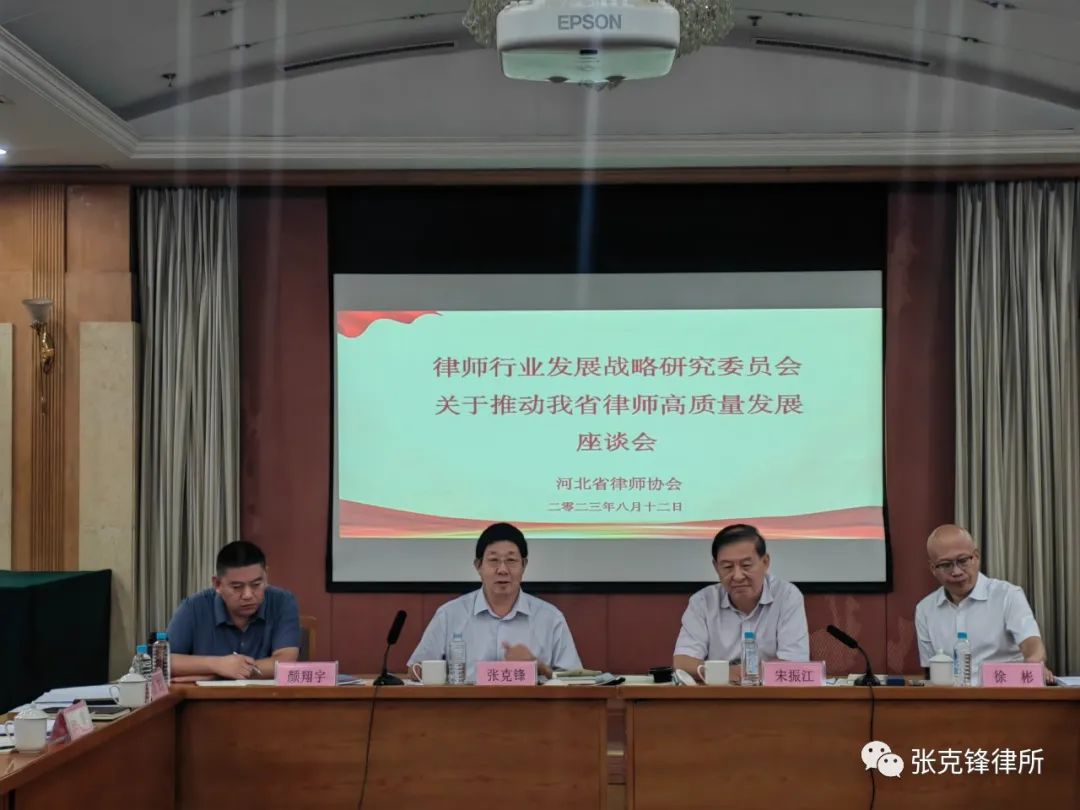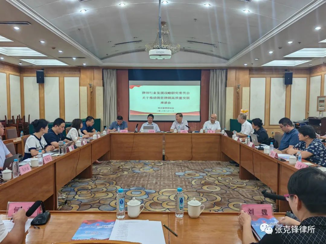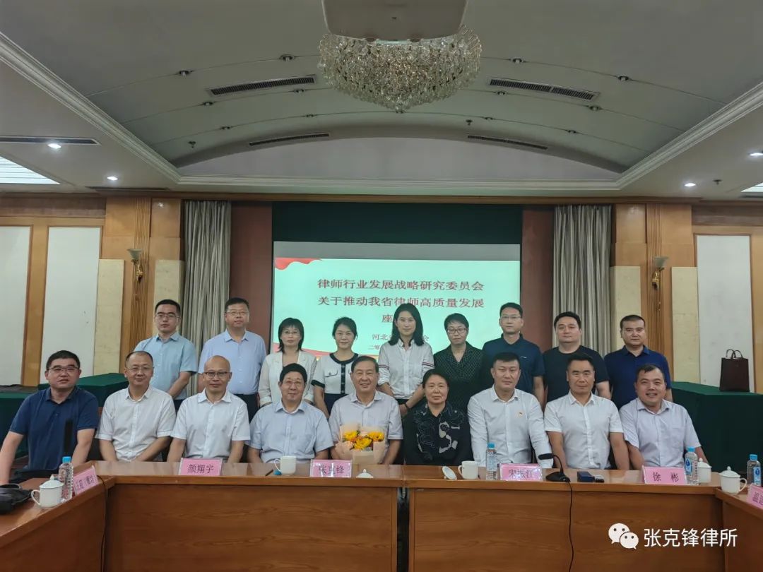 2023年8月12日,河北省律师协会律师行业发展战略研究委员会在石家庄召开“推动我省律师高质量发展座谈会”。我所主任张克锋、副主任王超参加了会议。