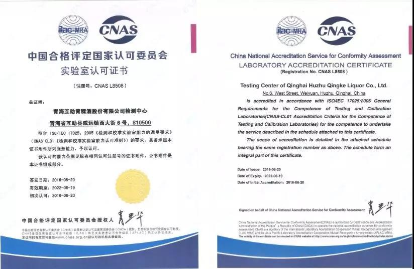 2016年6月20日,企业酒体研发与检测中心取得中国CNAS国家实验室认可(注册号L8508),具备承担白酒检测的第一方、第三方检测服务的能力和向社会出具数据报告的资格。检测中心拥有气相色谱仪、高效液相色谱仪、液质联用仪、气质联用仪、原子吸收分光光度计、双光束紫外可见分光光度计等价值2000多万的精密分析仪器20多台套,主要承担了天佑德青稞酒公司酿造过程和酒类固有参数的定性、定量分析及食品安全检测。