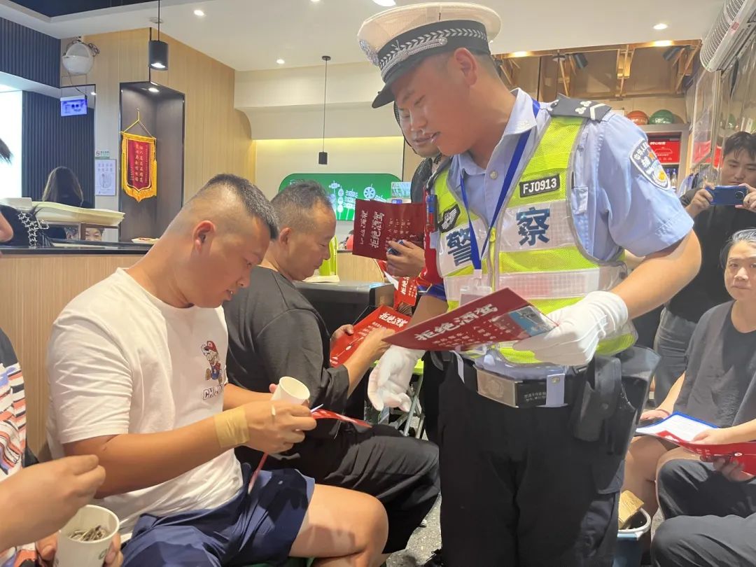 随后,民警以身边典型事故案例为切入点,向就餐群众详细讲解酒驾、醉驾等交通违法行为的危害及后果,警示教育大家坚持做到“喝酒不开车、开车不喝酒”、“喝酒开车找代驾”。同时,倡议大家不仅要拒绝酒后驾车,更要主动参与到拒绝酒驾的宣传教育工作中来,做好“零酒驾”劝导员,共同筑牢交通安全防线,从源头上遏制酒驾违法行为的发生。