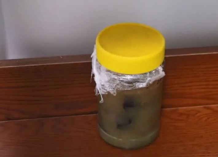 最后就套上保鲜膜,密封起瓶盖,放置在阴凉通风处,发酵半个月左右。每一周要记得放气一次,把滤渣除去后,就是美味的葡萄酒啦!