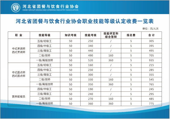 收费标准参照《关于进一步规范全省职业技能鉴定考核收费标准等事项的通知》(冀价行费【2018】86号)文件