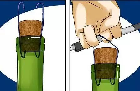 2. 将挂钩从软木塞的一侧伸入瓶中,旋转挂钩并钩住软木塞,将其拖出。