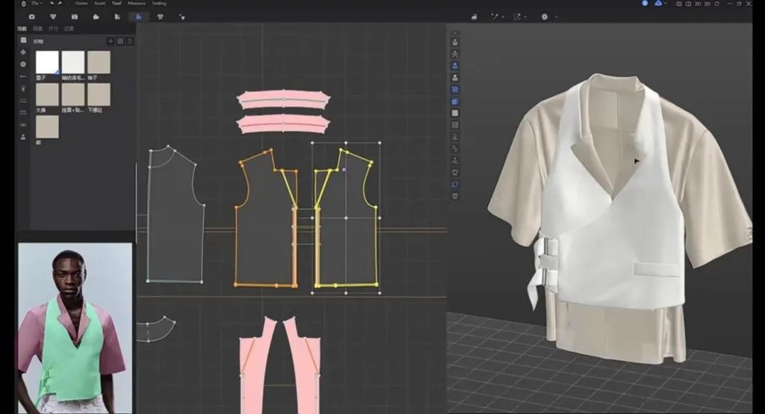 AIGC对服装行业的影响主要集中于商品企划、产品设计、零售终端三个环节,AIGC提升设计师效率、数字人+3D服装给消费者带来新体验,这些新内容都将给服装行业带来新机会,而这些环节是企业最赚钱的环节。设计师和版师是服装设计中的主要岗位,一个负责将灵感变成图纸,一个负责将图纸变成样衣。一开始大家都认为大模型通过简单要素输入,从而快速图纸,在生成速度上远超设计师,至少提升300%速度。据设计师反馈,AIGC目前只是在单款服装的设计上提供了灵感。单从款式设计上来说,其实绝大多数服装企业都有自己的版型基础,也就是大体‘规矩’,在这个‘规矩’内,设计师会去判断用什么样的颜色、辅料、装饰性元素。AIGC就是在这个环节给出灵感和帮助。版师:从事服装制版工作的人。制版在整个服装生产流程中承上启下——对上,要和设计师沟通样衣的工艺细节;对下,要向样衣工或生产工厂交代缝制样衣的注意事项,把控样衣(非大货)质量。AIGC对版师们的威胁在业界有一定公认,因为版师要将设计师的2D稿子变成生产需要的CAD图,同时生产出样衣,供设计师进行修改,即2D转3D,这个活儿虽然很专业但也很套路化。凌迪的Style3D AI产业大模型中,只要将相应的服装拖入设计框,点击AI生成版片,几秒内可以将版片和3D效果独立出来。凌迪科技Style3D