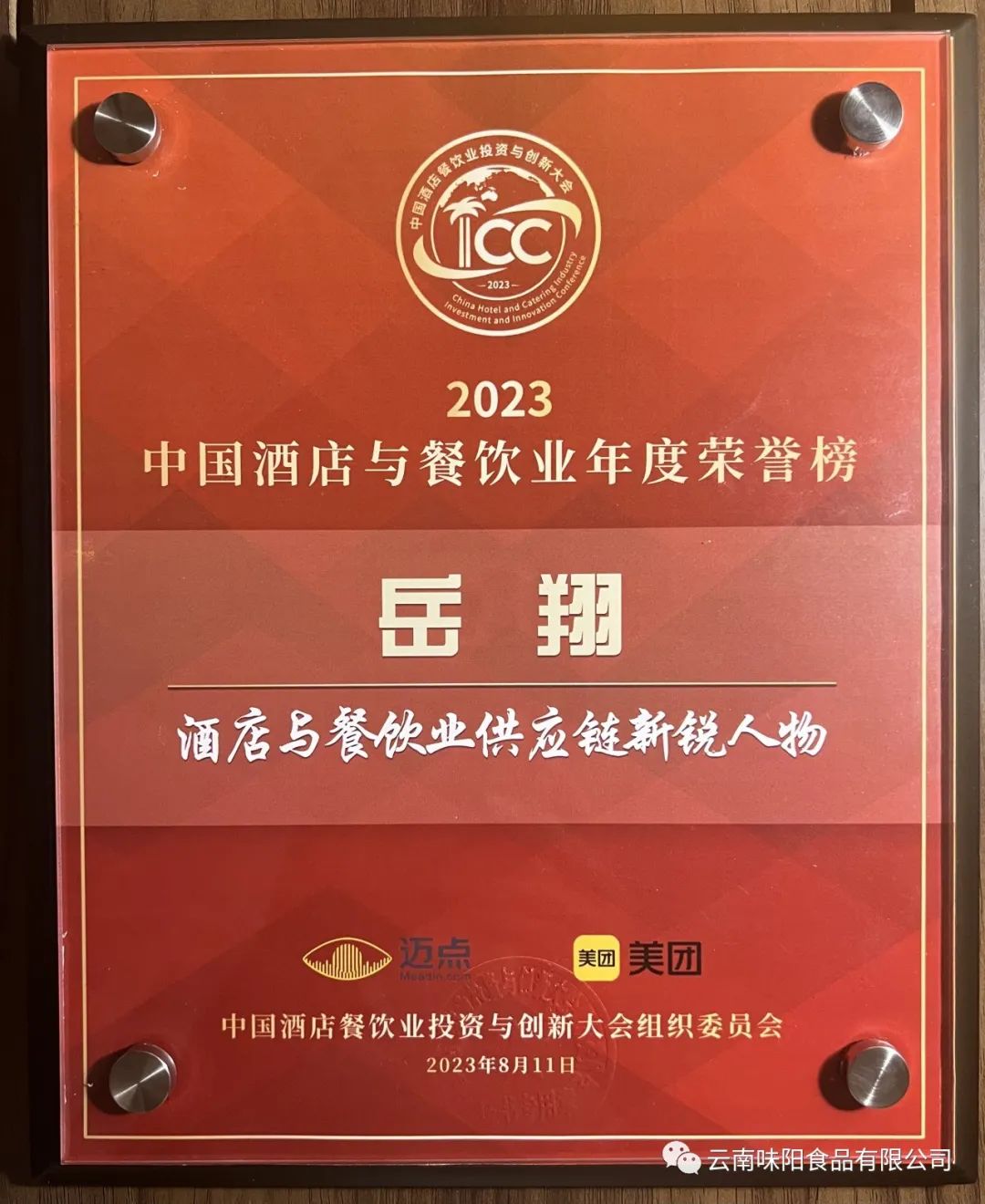本次大会邀请了国家暨地方行业主管部门,国内各个省市区酒店餐饮行业协会负责人、餐饮酒店企业董事长/总经理、专家学者、品牌供应商、投资商,酒店餐饮设备供应企业等负责人出席,并组织了国内酒店餐饮领域资深专家进行评审。经过评审,阳光公司因多年来为餐饮行业提供高品质且美味健康的酱泡菜产品,被评为2023年中国酒店与餐饮业原材料领军品牌供应商。与此同时,阳光公司总经理岳翔喜获2023年中国酒店与餐饮业供应链新锐人物奖。