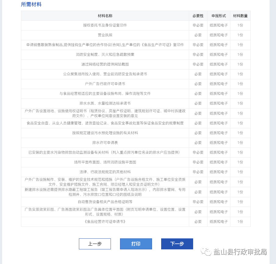 5.一次性告知您本次申报需要准备的材料。系统会根据您选择办理的事项,为您提供一份材料清单,包括必要材料和非必要材料,您至少需要准备全部的必要材料。材料准备齐全后点击“下一步”。