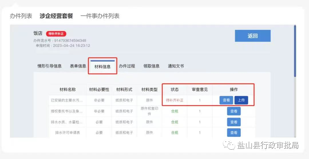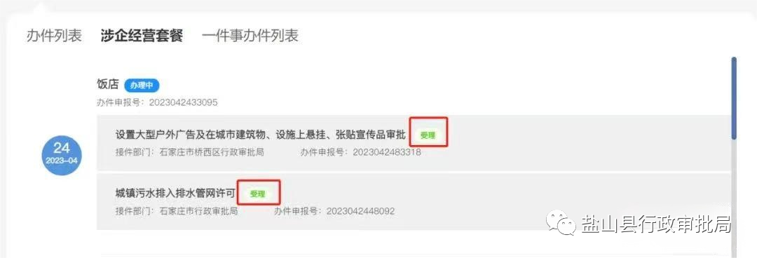 如通知您到现场核验申请材料的原件,您需要到短信通知的具体地点进行现场原件核验。您还可以在涉企经营套餐办件列表中实时查看套餐办理进度、办理人员、办理时间。