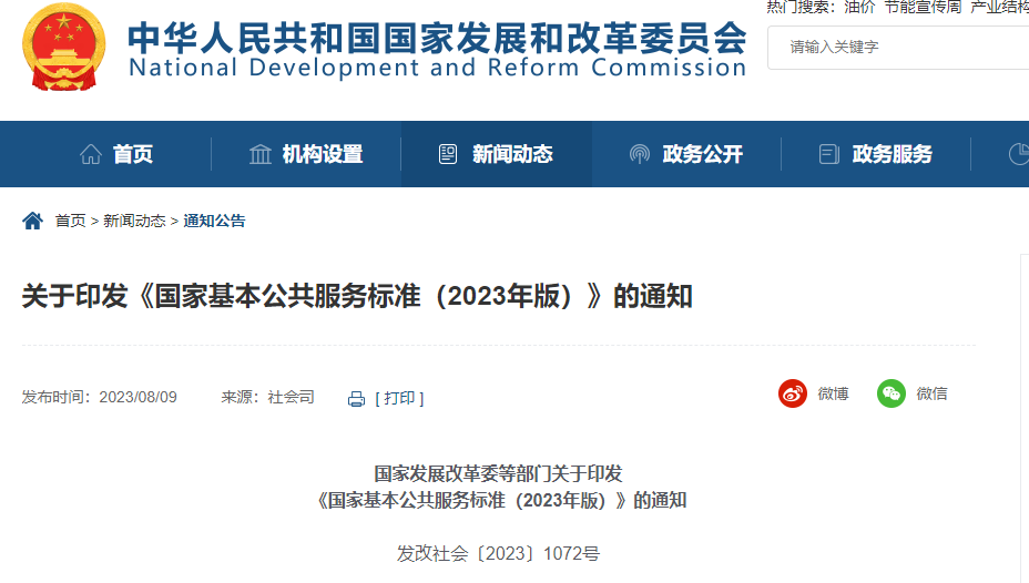 8月9日,国家发改委、教育部等10个部门联合印发《国家基本公共服务标准(2023年版)》,这是自2021年国家基本公共服务标准发布实施以来的首次调整,其对部分服务项目进行了“增”“提”“调”,涉及调整服务事项共计48项,占总项目数的60%。