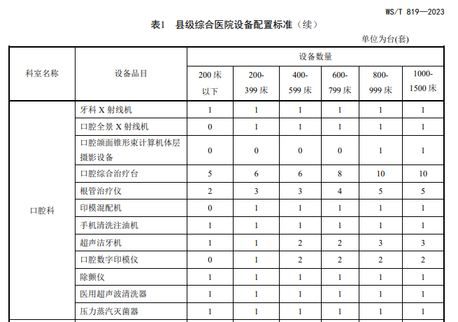 8月9日,国家卫健委发布推荐性卫生行业标准《县级综合医院设备配置标准》,标准自2024年1月1日起施行。《标准》适用于不超过1500床位规模的县级综合医院,规定了口腔科、耳鼻喉科等41个科室的设备配置数量的最低标准。