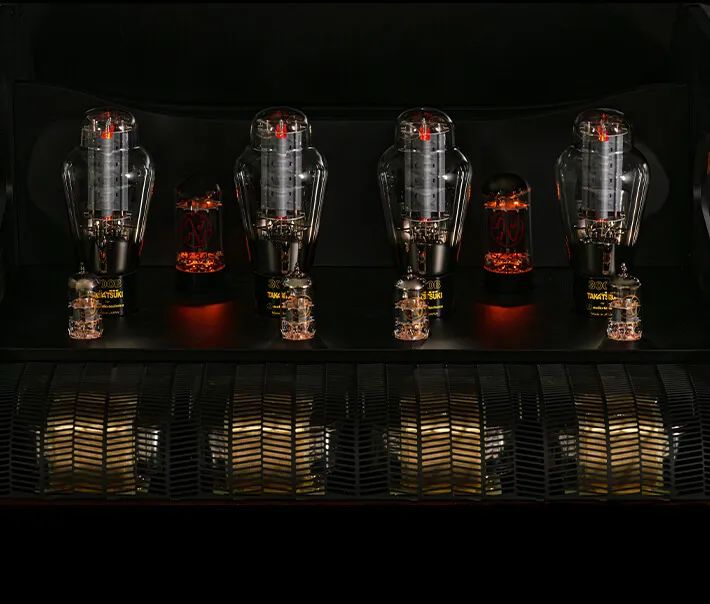 本机所使用的电子管都经过个别测试和配对,以发挥出更优化的性能。信号增强部分采用两对JJ ELECTRONIC公司的ECC83S,声音醇厚而有韵味。功率增强部分则以两对高槻电器工业公司的TA-300B提供强劲的驱动力和具有跃动感的活生音色。