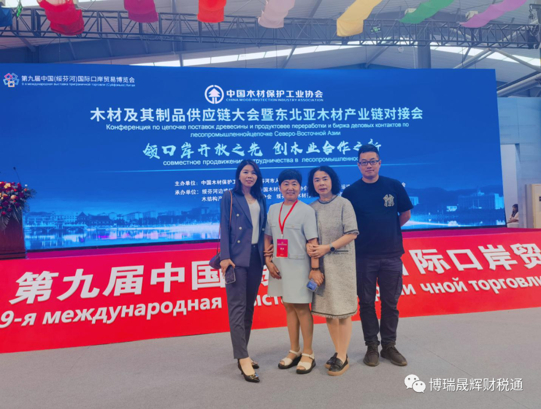 第九届中国(绥芬河)国际口岸贸易博览会于2023年08月08日至11日在绥芬河边境经济合作区会展中心举办 。陈建辉陈总受中国木材保护工业协会邀请携团队参会,深度了解我国木材行业及产业链的发展,并在会议上分享了财税新政。陈总用专业技能、财务实战经验从财税合规方式分析绥芬河外贸经济恢复、经济复苏后企业对外贸易的商机。会后携团队参观当地一些进出口贸易的木材国企、私营等企业。