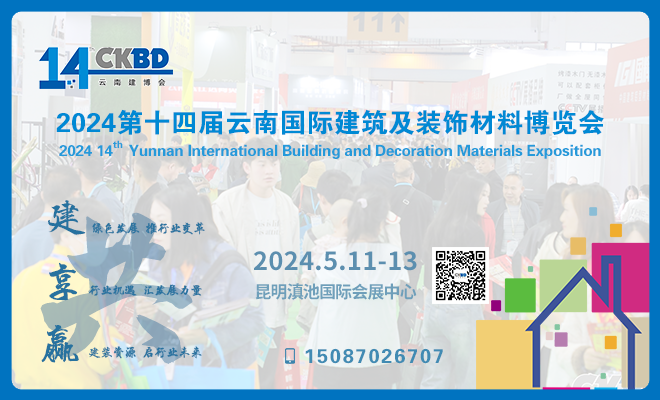 2024云南建博会,参展面积将扩增至100000+㎡,预计1500+参展商,8大展馆覆盖装饰材料、建筑科技、门窗及配套、全屋定制、整家(品牌)家居、厨卫电器、陶瓷卫浴、照明及灯饰等诸多建装领域。