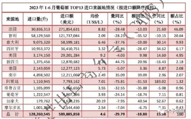 葡萄酒进口量额持续下降