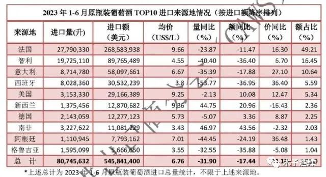 其中,葡萄酒进口中的大户,瓶装酒葡萄酒(约占9成),跌幅没有放缓,量跌幅较上半年扩大5个点,进口额的跌幅扩大3个点。
