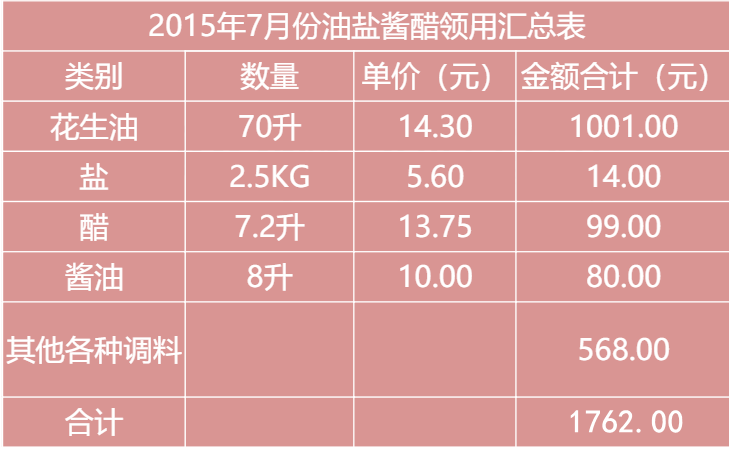 根据下表结转本月油盐酱醋成本。