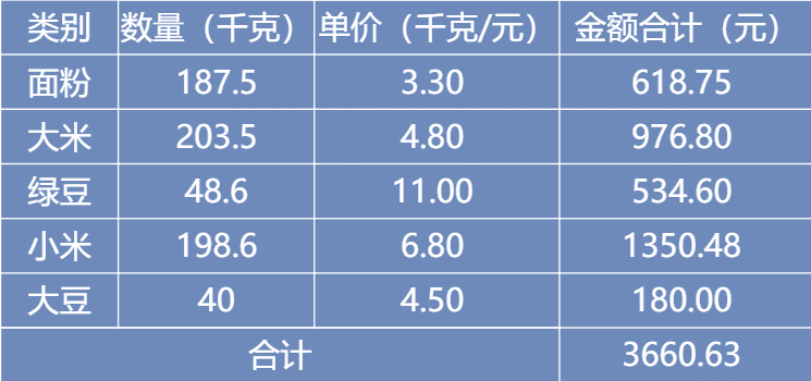 月底,根据下表结转粮食成本。