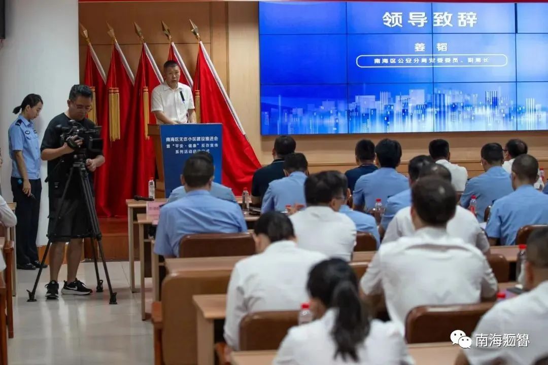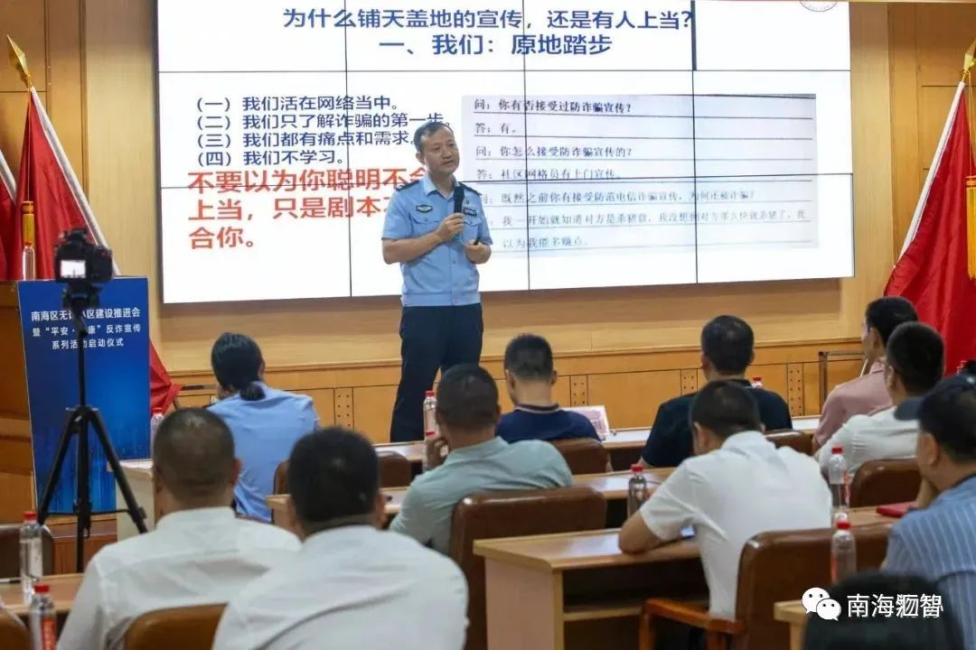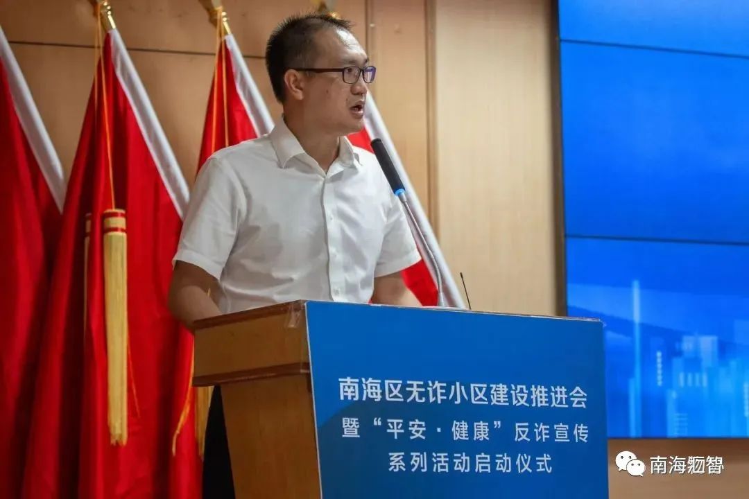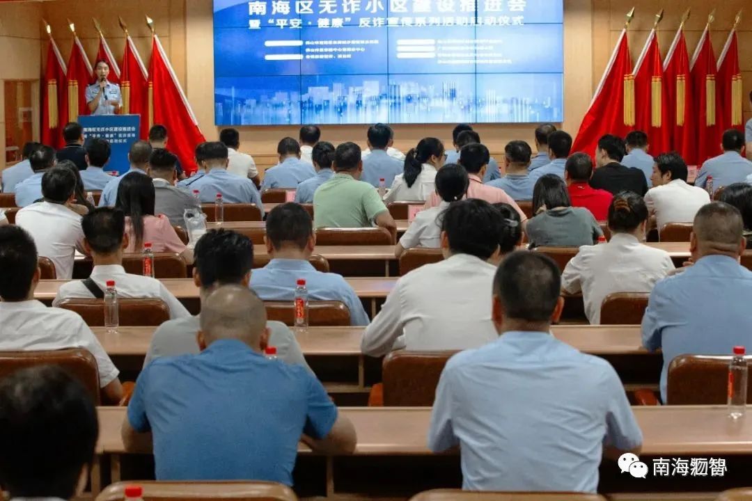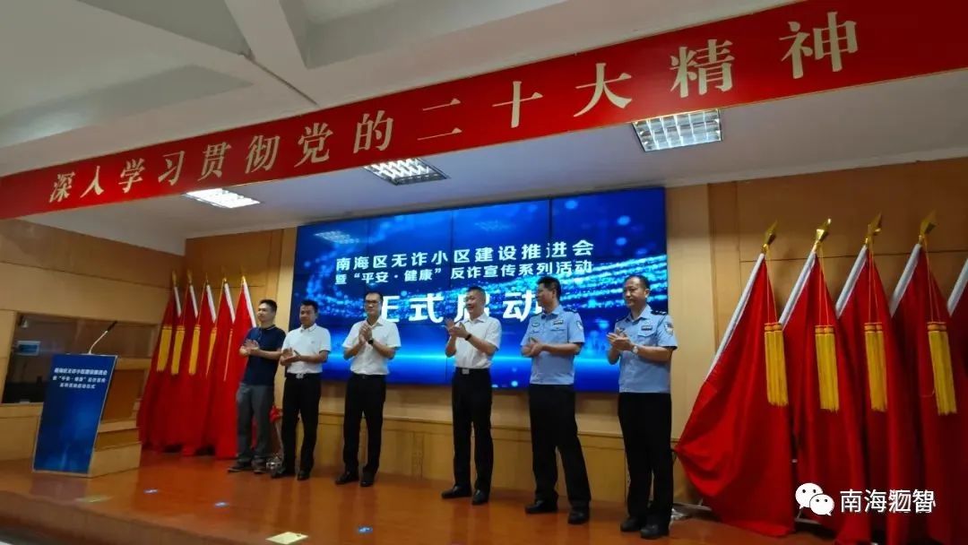 2023年8月11日上午,南海区公安分局反诈分中心携手南海区住房城乡建设和水利局、南海区物业管理行业协会举办南海区无诈小区建设推进会暨“平安·健康”反诈宣传系列活动启动仪式。
