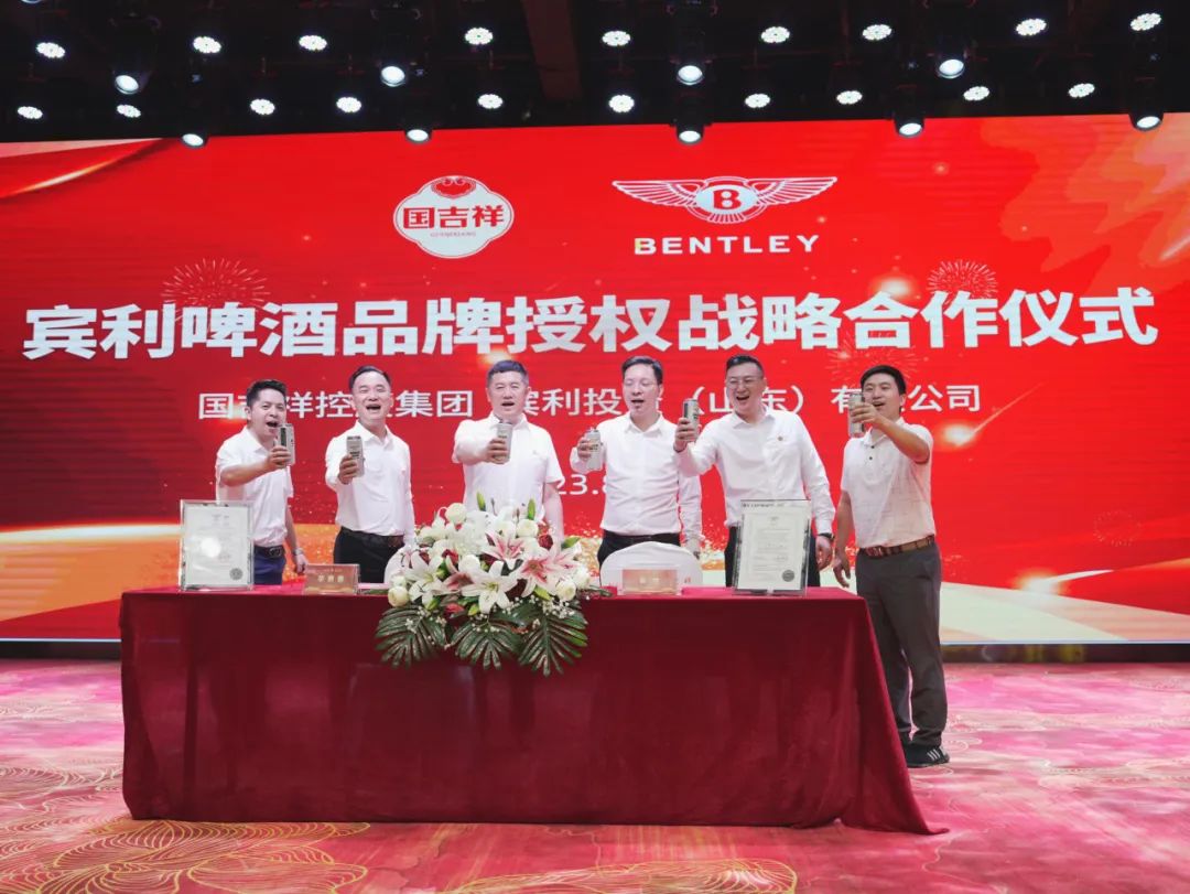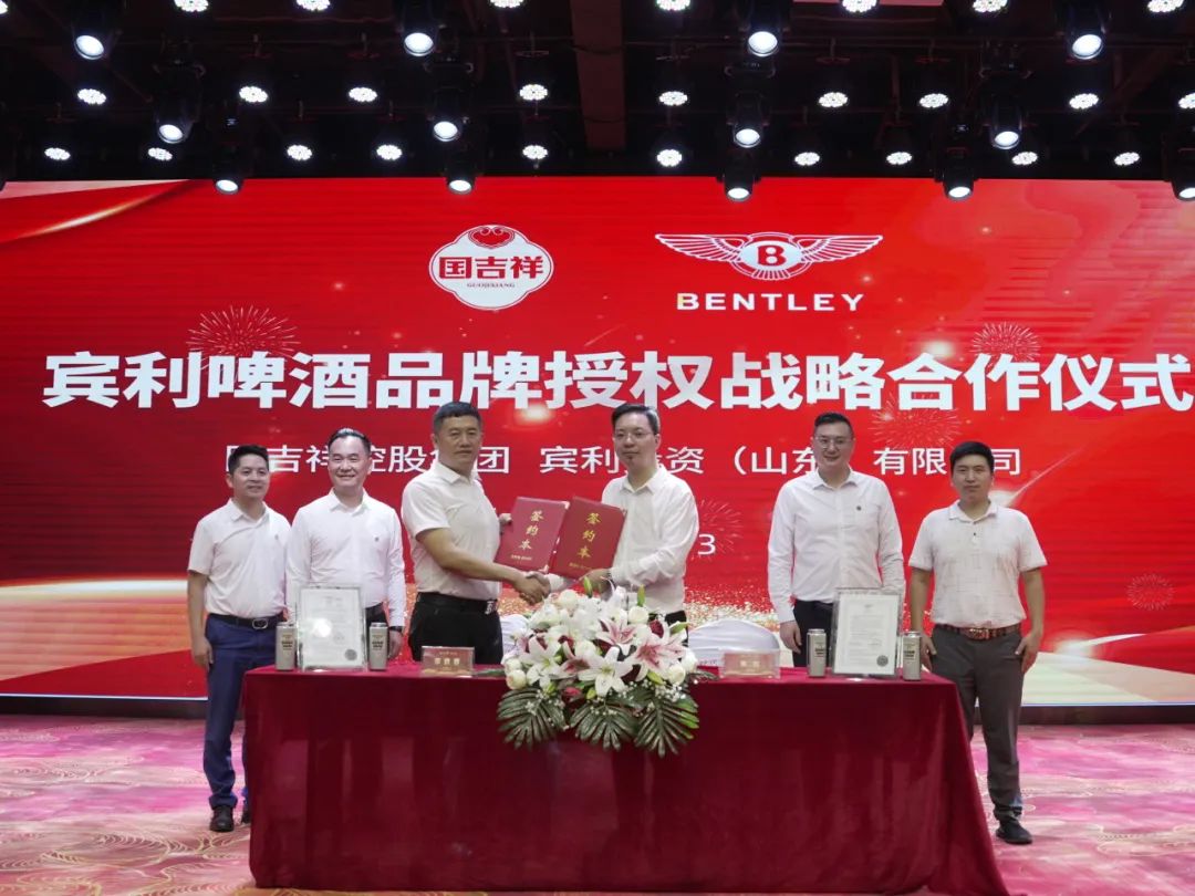 8月13日,国吉祥控股集团与宾利投资(山东)有限公司在贵州仁怀国吉祥控股集团总部大楼隆重举行宾利啤酒品牌授权战略合作签约仪式。此次合作标志着宾利啤酒正式加入国吉祥新型消费生态体系,共同推动中国啤酒产业的高质量发展,进一步巩固国吉祥新型消费生态体系的领先地位。