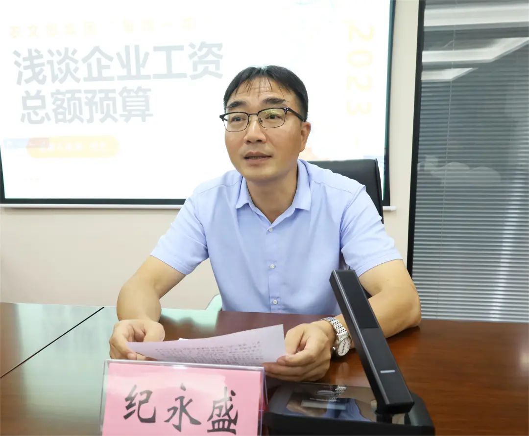 纪永盛作学习小结讲话。他指出,企业工资总额预算是企业在一定时期内,根据生产经营计划和财务预算,对员工工资总额进行预测和安排的一项重要工作,目的是确保企业在控制成本的同时,为员工提供合理的薪酬福利待遇,提高员工工作积极性和生产效率。他要求,各部门(单位)要认真学习领会、充分消化吸收课程内容,深入贯彻落实中央、省、市关于国有企业工资总额管理文件精神,将工资总额管控融入到集团运营管理,建立灵活高效的工资总额管理机制,提升对工资总额预算管理实际应用能力,确保干部员工工资管理更加公平、规范、有序,建立集团干部员工收入能增能减的有效机制,进一步增强集团发展活力和市场竞争力,助推集团高质量发展。