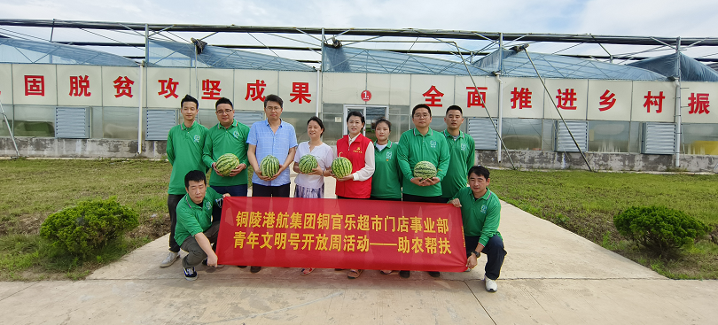 7月4日上午,铜陵港航集团铜官乐超市门店事业部青年文明号到位于老洲镇罗墩村的有机地标数字产业有限公司开展“助农帮扶”开放周活动,驻罗墩村第一书记、乡村振兴工作队队长葛玉玺和村两委陪同。