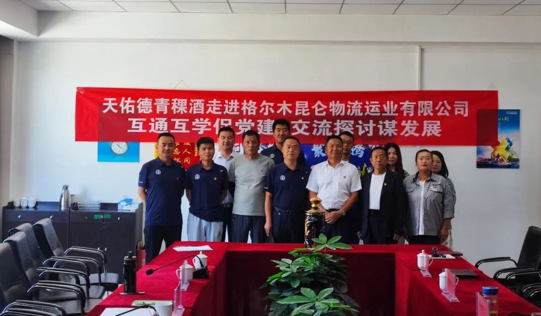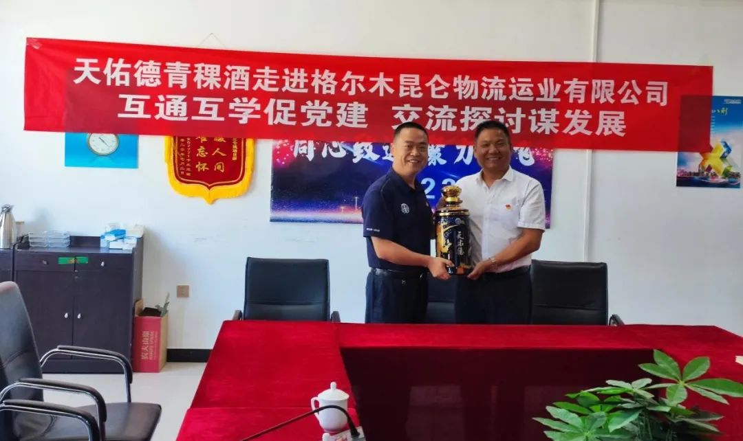 8月12日,天佑德青稞酒公司副总经理、营销中心党支部书记、青海省青年企业家副会长白海云携天佑德青稞酒公营销中心海西大区总监曾晓泽、营销中心社会关系运营组组长蒋柏山、营销中心格尔木办事处经理、格尔木六六连喜商贸总经理赵永辉等一行走进格尔木昆仑物流运业有限公司,开展以“互通互学促党建,交流探讨谋发展”为主题的交流活动。本次活动在格尔木昆仑物流运业有限公司党支部书记齐广兴的带领下,首先是参观了格尔木昆仑物流运业有限公司海西州外向型企业党建示范点,详细了解了格尔木昆仑物流运业有限公司的发展历程和党委历程。随后,双方通过各自的宣传资料进一步了解企业发展的情况,通过认真听、认真学企业宣传资料,切身感受到格尔木昆仑物流运业有限公司的发展历史,让天佑德一行6人收获满满。