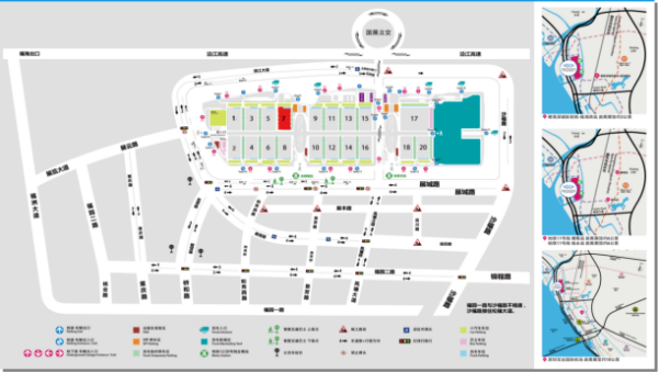 线路二:S3沿江高速 > 福海收费站 > 福洲大道 > 福园一路> 桥和路 > 展城路 > 展馆南入口停车场——15号门或者2号门