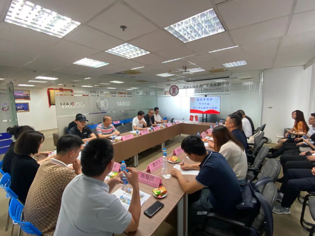 中山参展团一行35人拜访了越南中国商会广东企业联合会(越南粤商会),越南粤商会会长徐丰培、副会长及相关会员企业对中山企业的到访表示热烈欢迎,会上就越南当地营商政策、越粤海外仓、越中产品展销中心等主题进行交流。