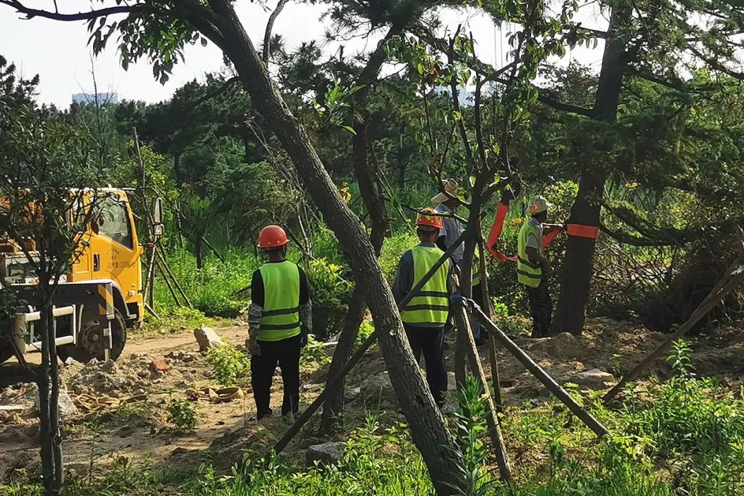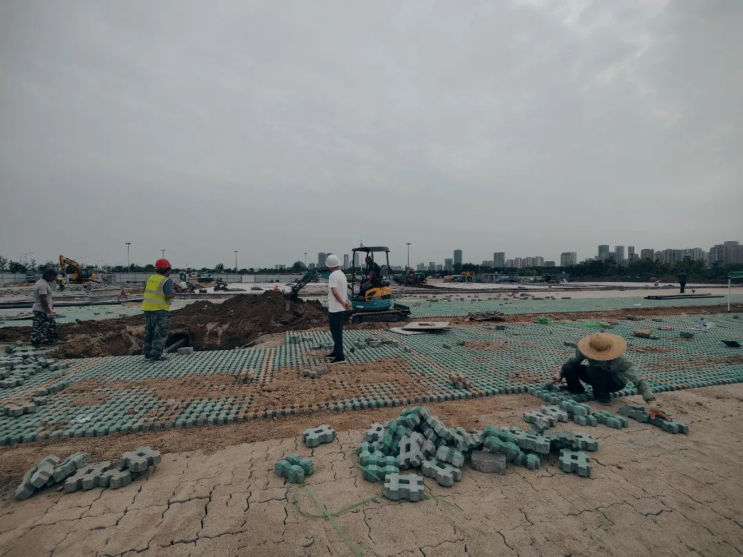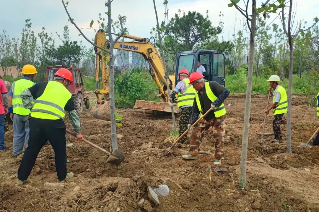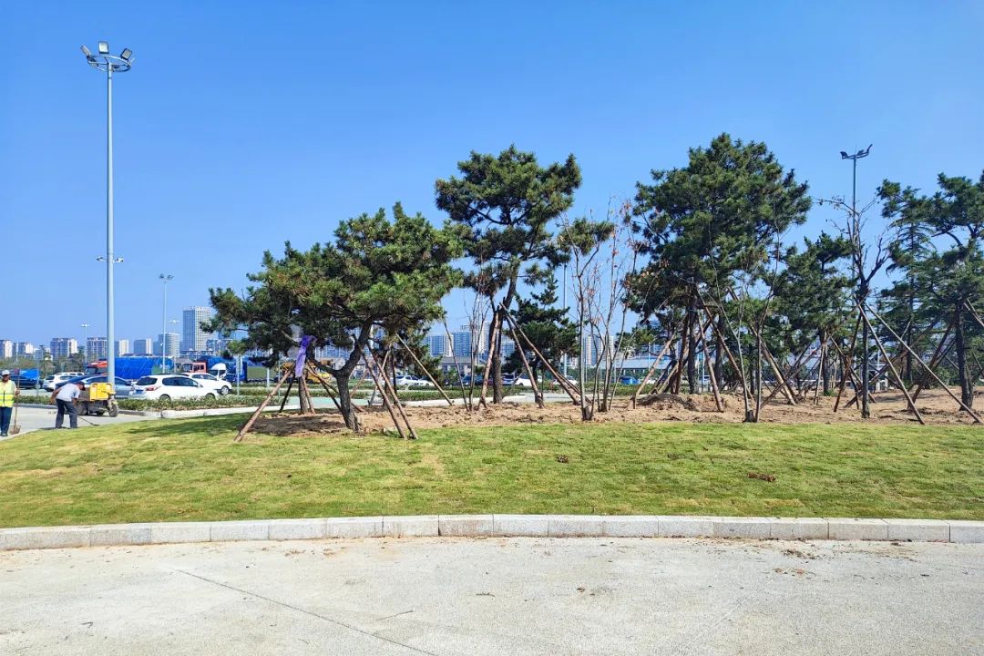 活动场地建设前期,承担苗木移植清场及停车场绿化工作,开展入场清苗、移植苗木、土方换填、平整地型及完善周边绿化等,施工队伍抢抓工期、攻坚克难、安全施工,全力以赴推进项目进度,按时保质保量完成任务,切实保障靓丽优质的会场绿化景观。共计栽植黑松、雪松、海棠等乔木360余株,丛生紫薇、灌木球等280余株,红叶石楠2300余平方米,马尼拉草坪1200余平方米。