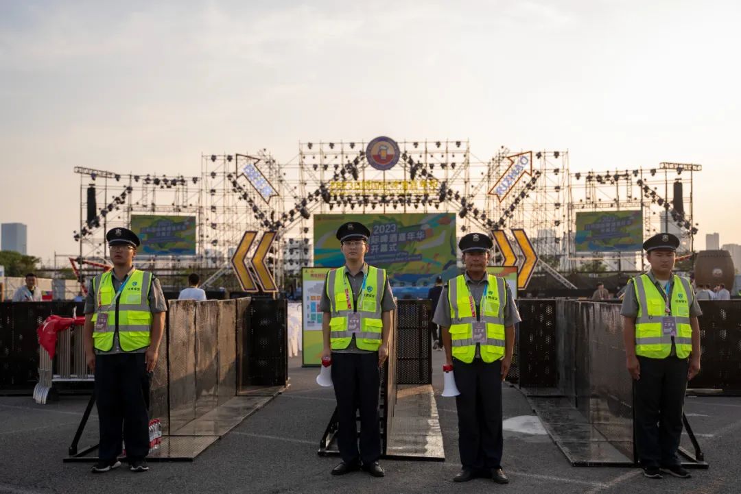 活动期间,每天出动70余名执勤人员,布置安检机4台、安检门6台、防暴铁马210米,采取重点管控、应急处突、路巡步巡等相结合的安保模式,将各类重点要素全部纳入视线范围,全力保障现场安全稳定。在涌动的人潮中,全体执勤人员身着黄色马甲,从烈日炎炎到皓月当空,坚守在会场周边,团结一致、协作配合、恪尽职守,诠释着“保一方平安 促社会和谐”的责任担当。