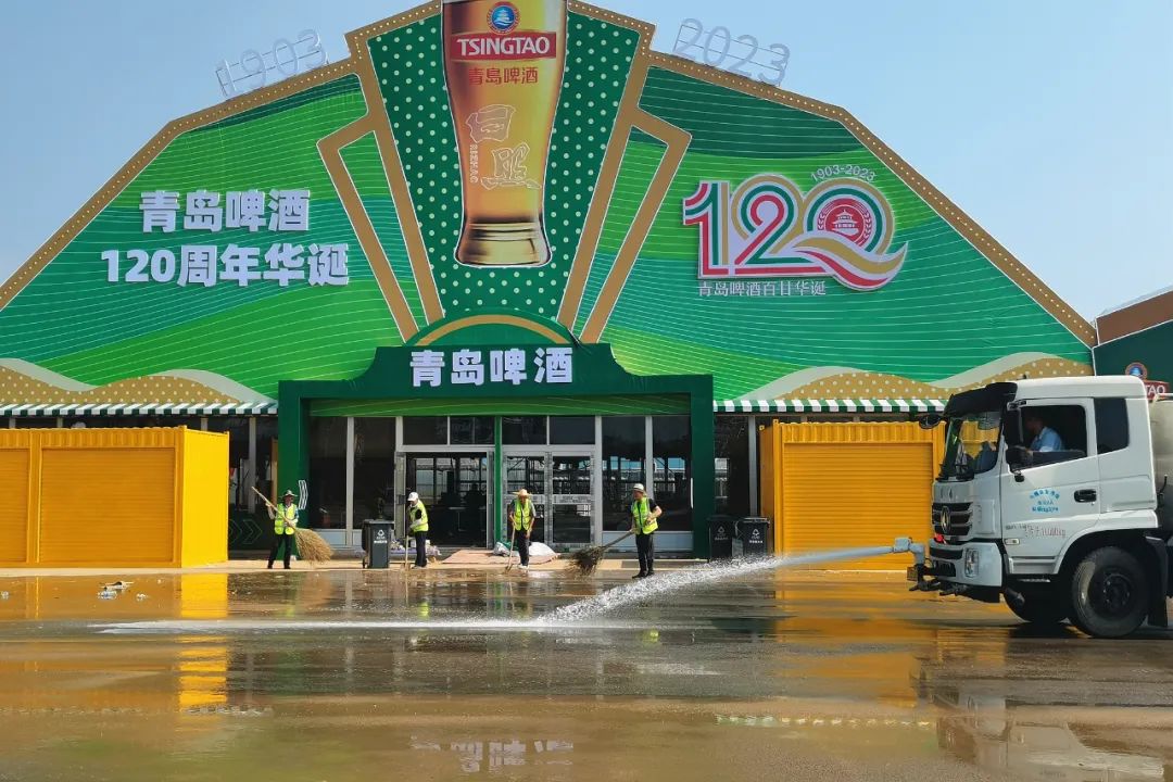 为保障活动顺利开展,向市民游客提供干净、舒适的会场环境,市园林环卫集团全面督导、提前部署、细化分工、狠抓落实,全面做好环卫保洁、垃圾清运、公厕管理、工程施工等工作,全力为啤酒嘉年华保驾护航。