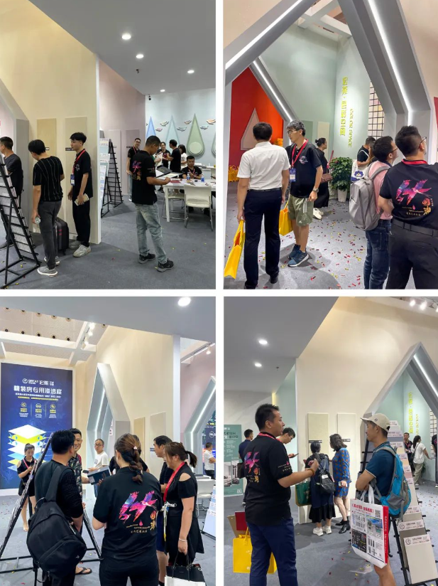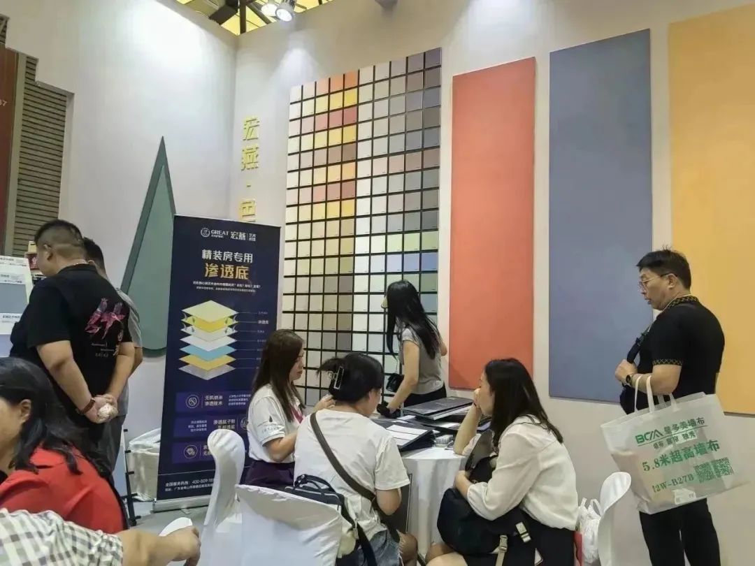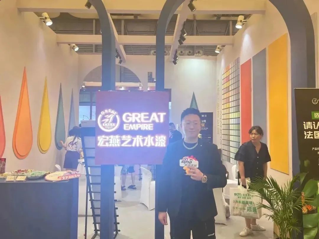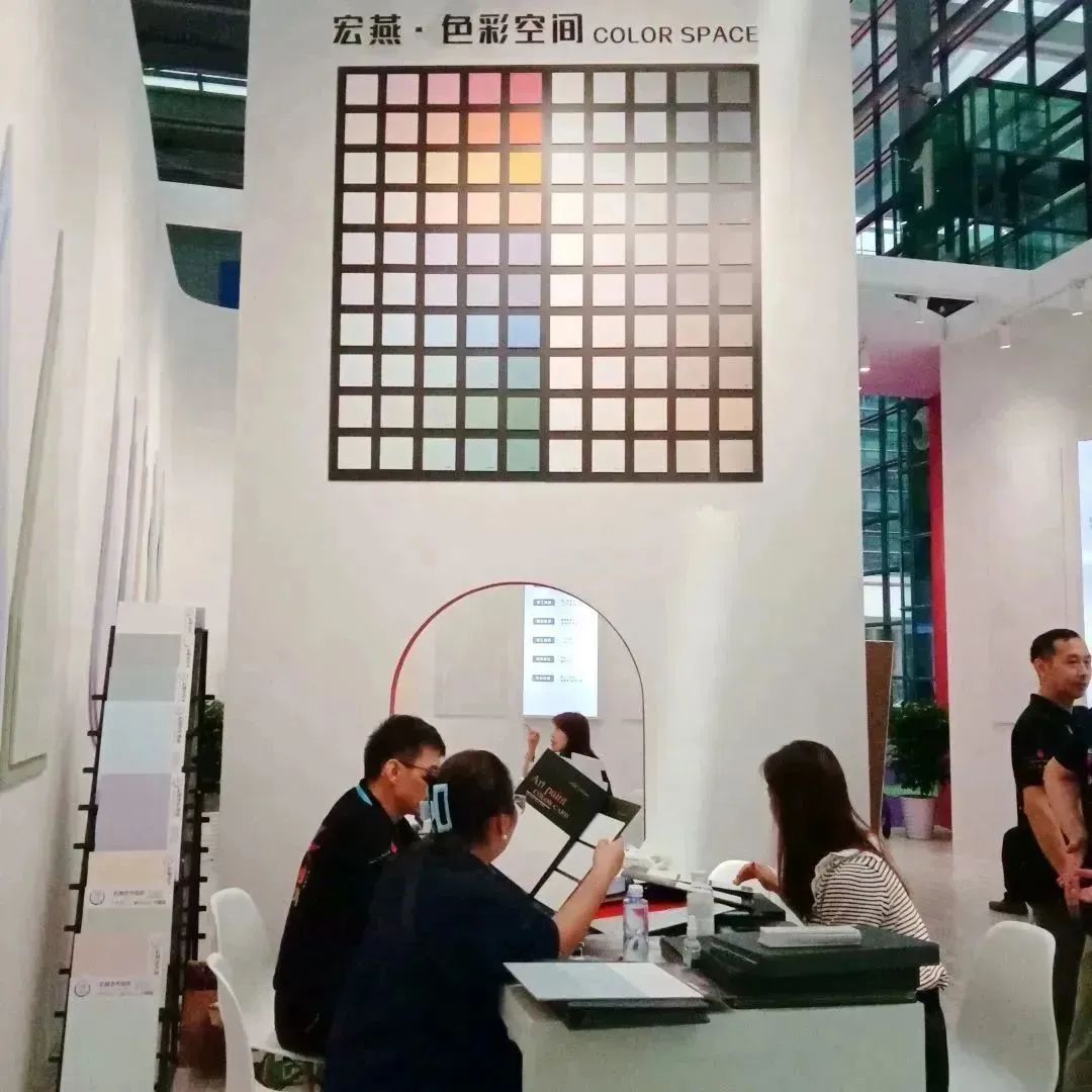 宏燕更是抓住时机,以全新潮玩艺术水漆助力软装新发展,现场通透开发环保的空间设计、多彩涂绘连廊、系列高颜值产品,更是吸引了众多客户驻足欣赏、咨询洽谈。