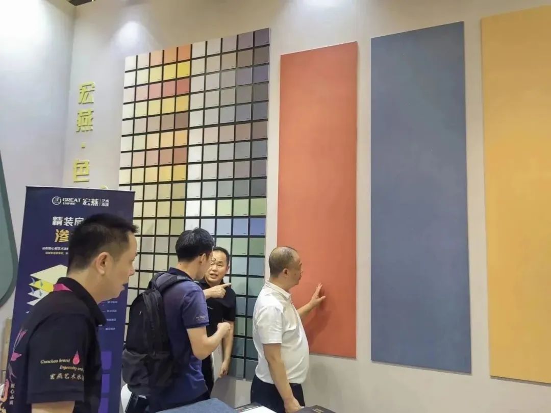 宏燕艺术水漆携重磅首发新品惊艳亮相建博会。建博会四天,宏燕艺术水漆作为全场最大的展馆,客商云集。
