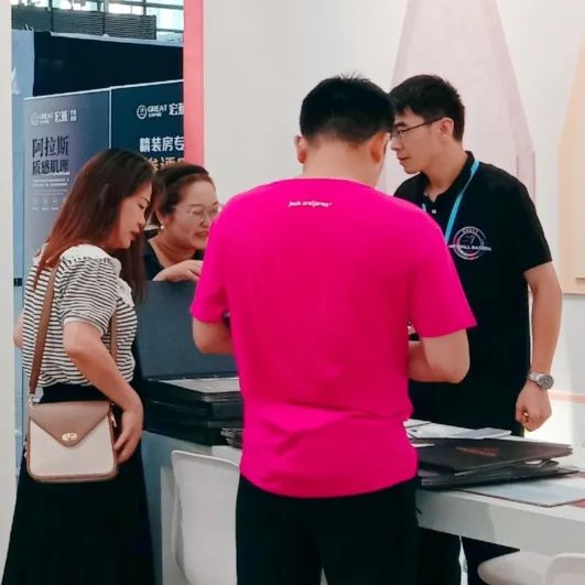 从广州建博会到深圳软装饰博览会再到上海墙纸墙面软装展览会,宏燕艺术水漆不是在去参展的路上就是在参展,宏燕以展会友,众多国内外的朋友齐聚宏燕展馆,商谈未来。