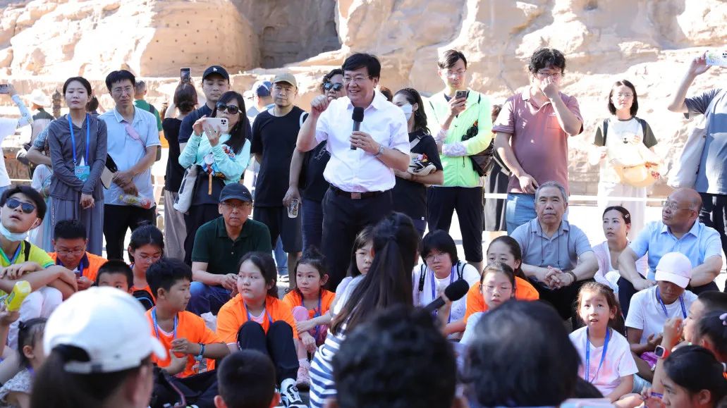 8月5日下午,作为本届展览的美育延伸活动,在大同云冈石窟特别策划了“席地而坐博物馆”——对语云冈 塑造未来主题活动。中央美术学院的专家、艺术家和云冈研究院的专家为广大青少年雕塑小作者分享中华传统文化、云冈文化、雕塑艺术,感受世界文化遗产云冈石窟鬼斧神工的雕塑技艺,一起学习雕塑知识,聆听每件雕塑作品的故事。专家们与广大青少年进行现场互动交流,传承美育精神。