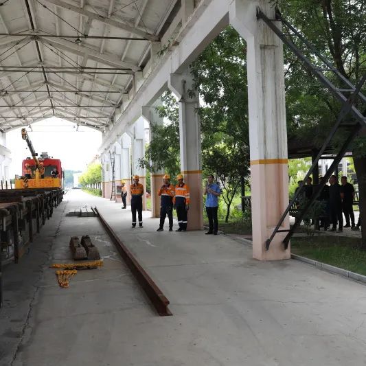 与会人员登上轨道车
