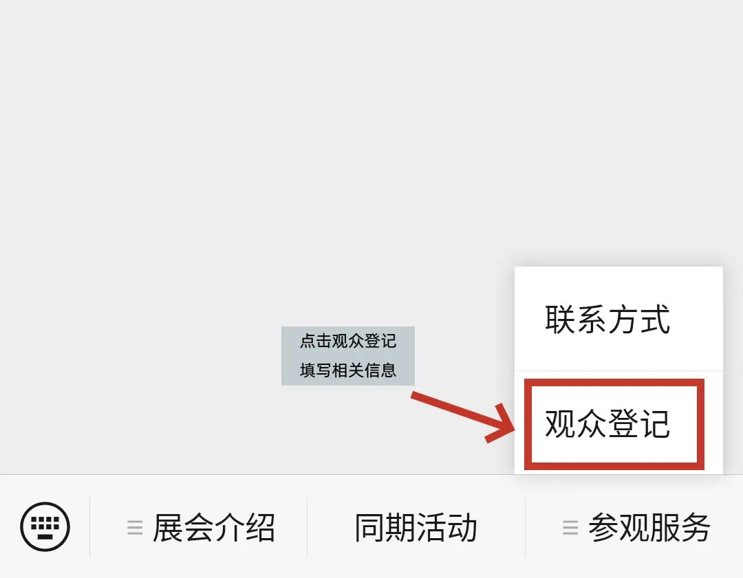 第二步:点击菜单栏“参观服务”—“观众登记”,即可进入预登记页面。