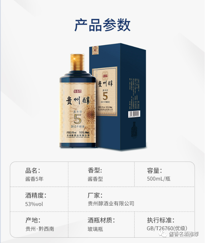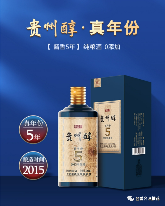 贵州醇5年香气细腻复杂酒体醇厚空杯留香,优雅持久,酱香风格明显,口感惊艳突出,具有典型的陈年酒感官特征。