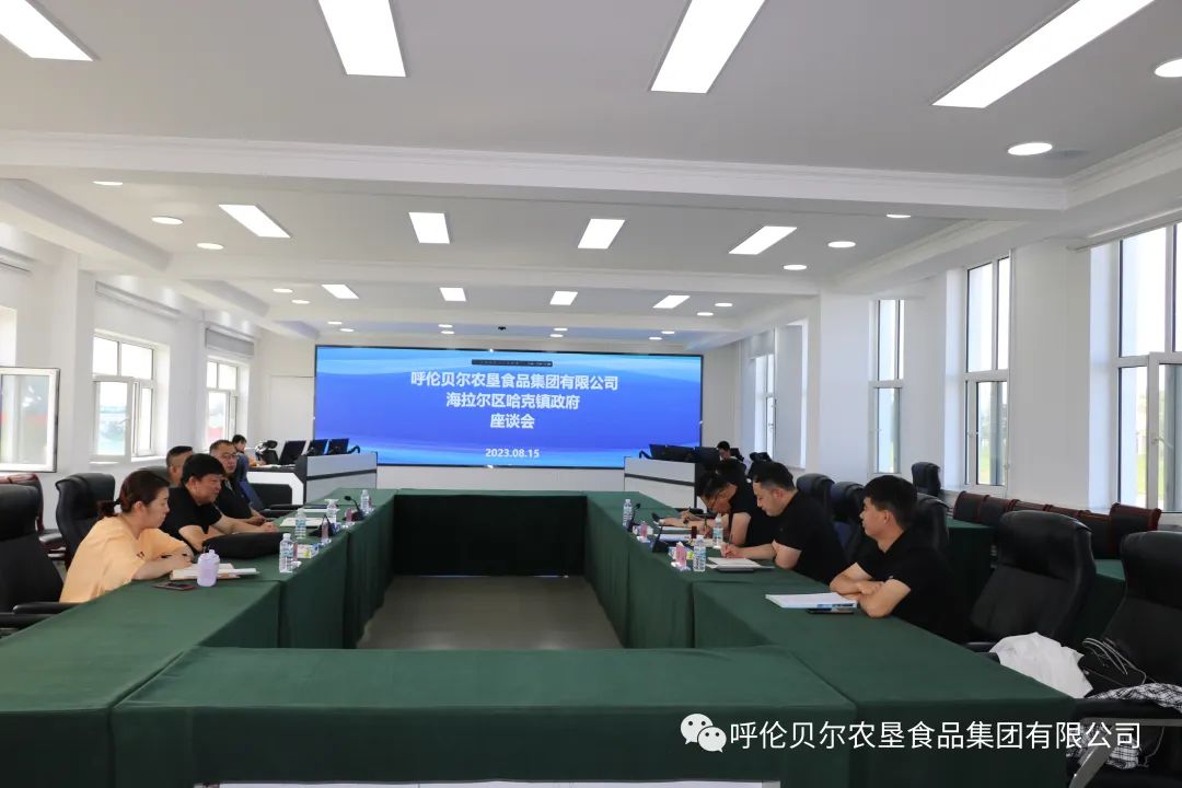 8月15日,海拉尔区哈克镇党委书记翟瑞懿,镇长罗涵一行四人深入食品集团,与食品集团就商谈预制菜合作事宜开展座谈,食品集团党委书记、董事长刘宇,党委副书记、副董事长、总经理张启良及相关部门负责人参加此次会议。
