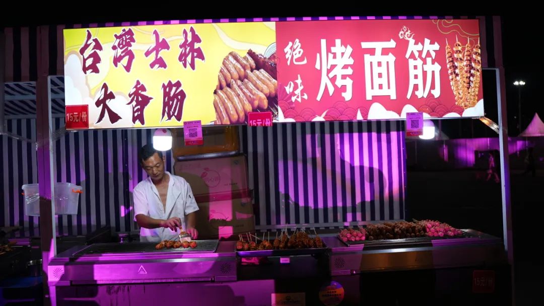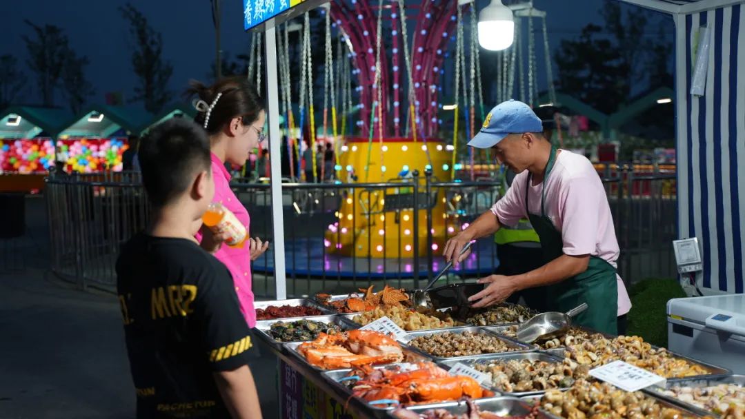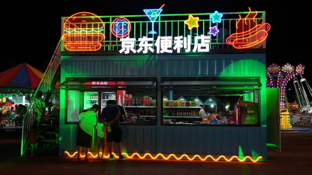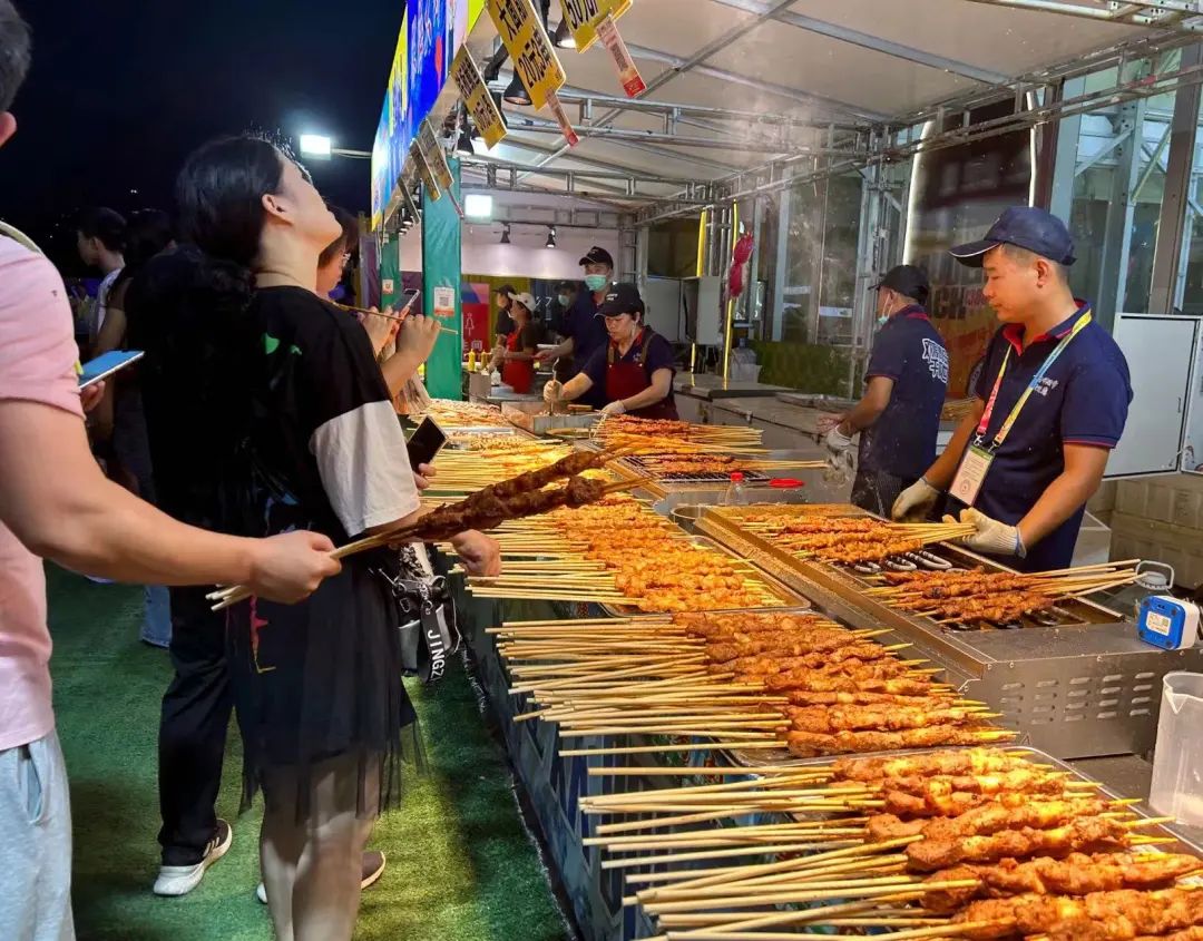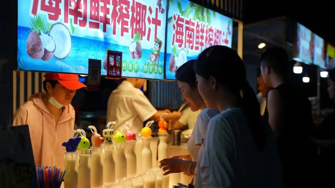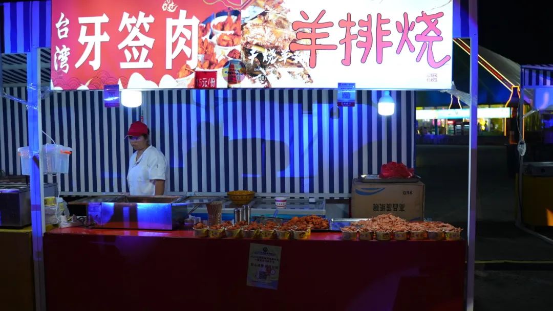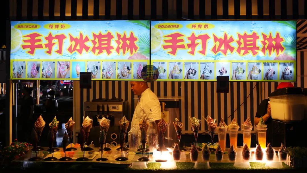 霓虹灯闪烁,美食好吃又好看。集装箱市集共有十余家美食,冷饮、冰淇淋、卤味、海鲜、甜水、网红特色小吃等等应有尽有。
