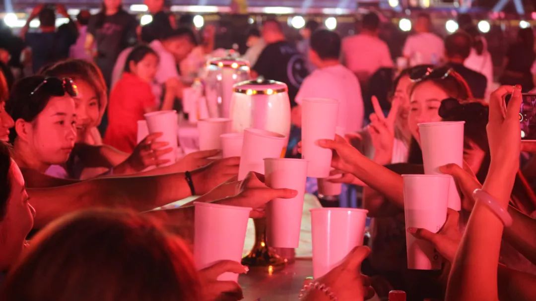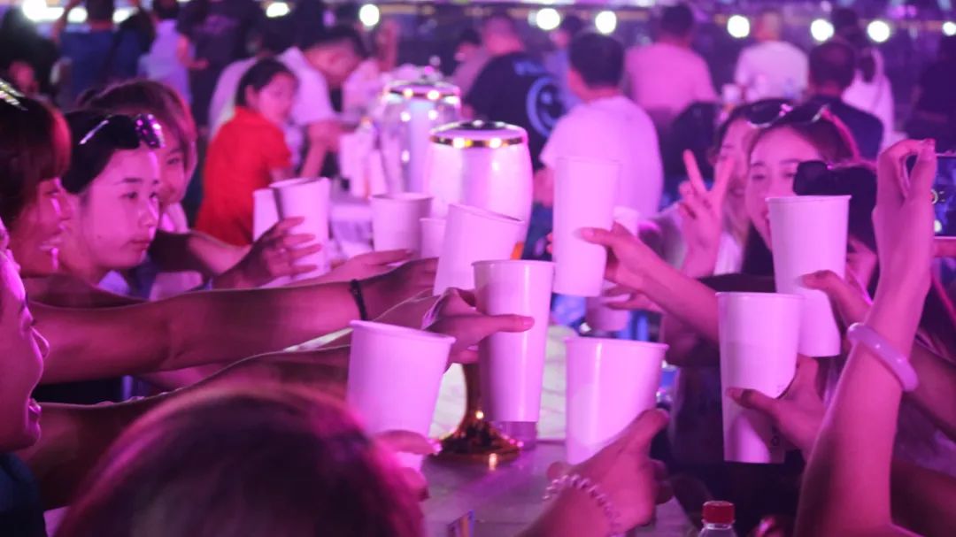 伴随着一群身着金色舞裙的金发女郎,托着金色的啤酒杯,跟着优美的音乐在舞台中央舞动,其曼妙性感的舞姿,带给台下观众不一样的浪漫风情。
