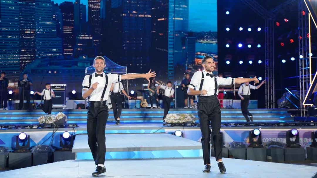 酒秀现场,俄罗斯5+舞团带来的极具异域风情的踢踏舞,舞者们笔挺的衬衣西裤,伴随着动感节奏的音乐,帅气的舞步,热情的表演点燃了在场观众的热情。