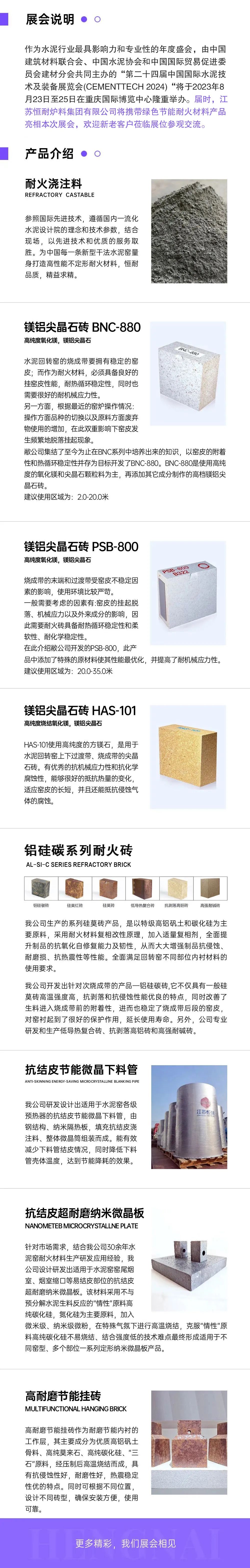 江苏恒耐炉料集团有限公司始创于1987年,占地150000平方米,建筑面积120000平方米,拥有员工300余人。是一家集研发、生产、销售、施工于一体的综合性耐火材料服务商。公司先后取得了5项发明专利、38项实用新型专利、起草并参与制定9项行业标准。公司生产的耐火材料产品主要服务于水泥、垃圾焚烧、冶金、电力等行业,服务于全球1300条水泥生产线。江苏恒耐分别在江苏常州、贵州贵阳、河南三门峡建立了三大生产基地,并在河北唐山、广东英德、四川成都建立三大产品中心库,真正做到24小时全天候响应客户需求。江苏恒耐将秉承“科技创新,服务全心”的宗旨,努力打造成为国内高温窑炉行业绿色、节能、环境友好的耐火材料专业服务商,为打造百年恒耐而不断努力。