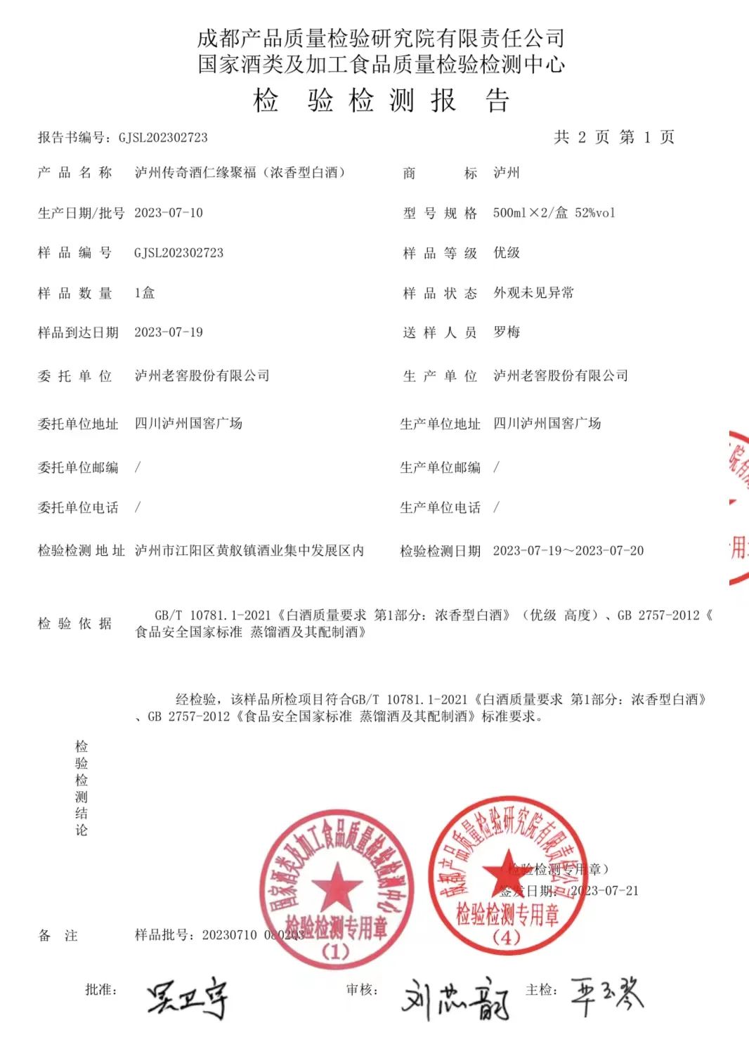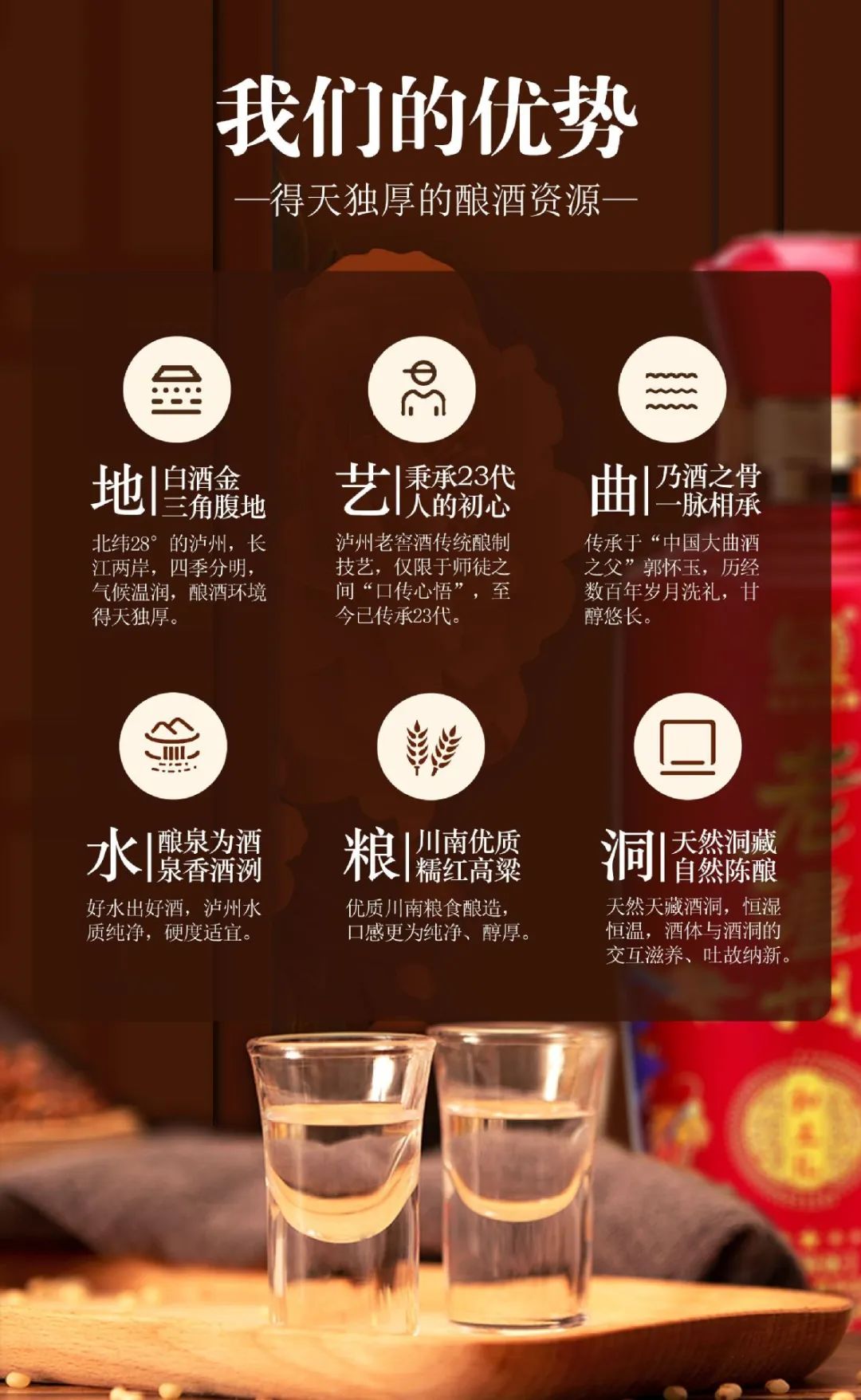 正是凭着这水、土、粮、窖、微生物,这天时、地利、人和,这多年积累,才成就了泸州老窖的“百年老窑飘香,好酒金牌不倒”的美誉。产品也标注着优级,在生产标准上,优级要高于一级,也就是说,优级酒代表着是该香型中要求Z高的酒品。而且每一瓶酒也都通过了严格的质量检测,品质有保证。