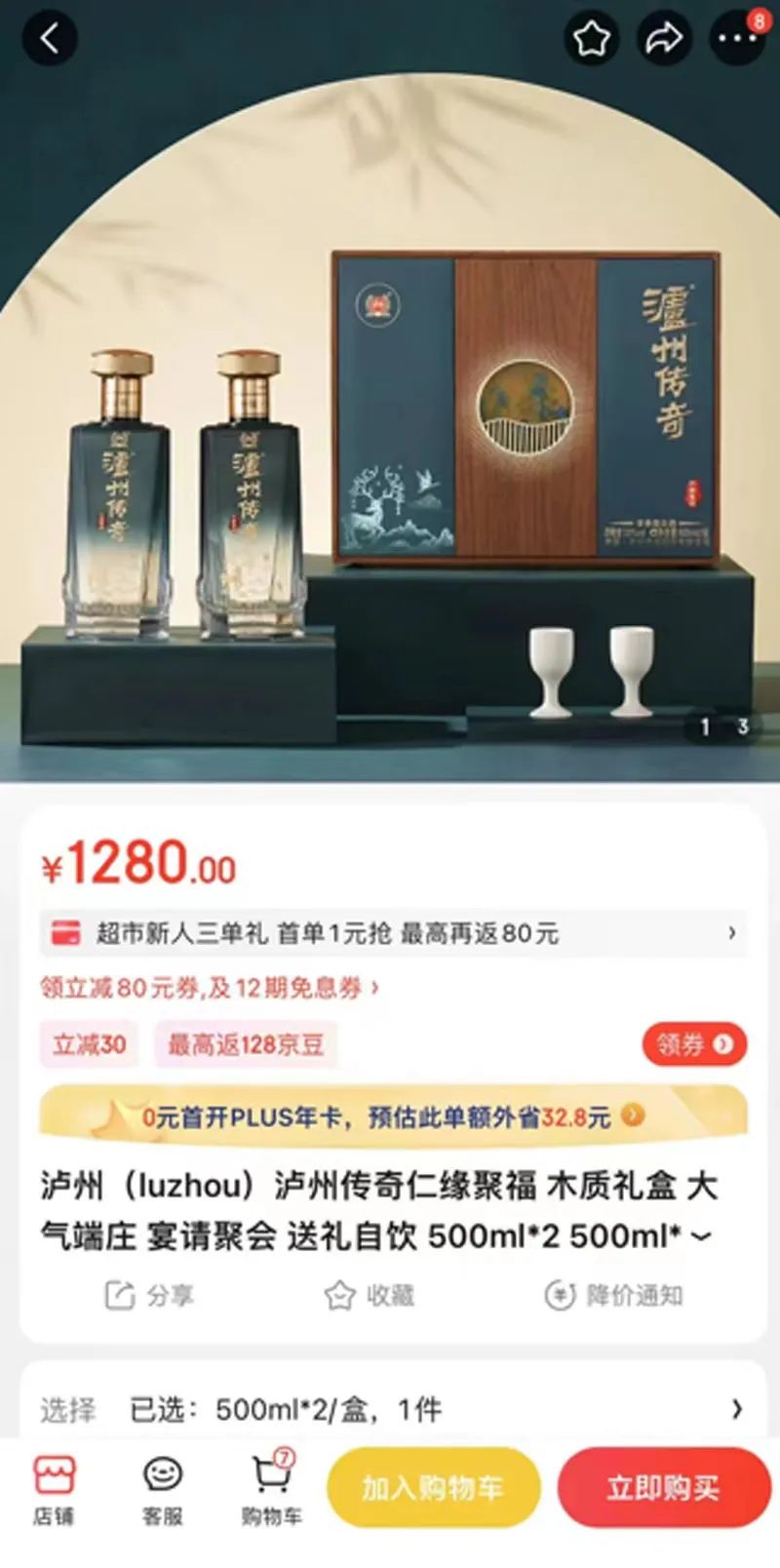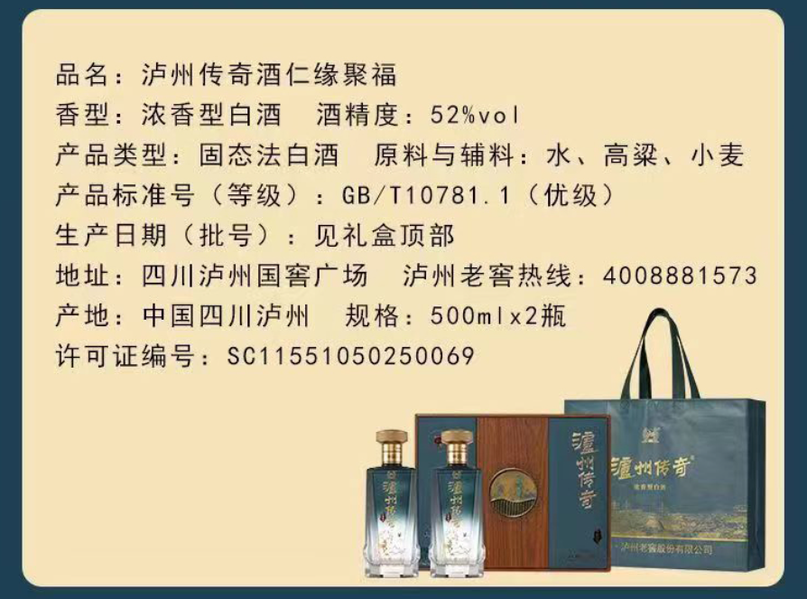 酒美,设计更美,这款泸州老窖【泸州传奇·仁缘聚福】外观主体优雅,传世佳酿配精巧设计,不管是自饮还是送人都有面,尤其瓶身的泸州传奇字样,彰显品质,无形中代表着饮者的高雅品位。这样的品质好酒,在某东上零售价也是1280元,价值不言而喻: