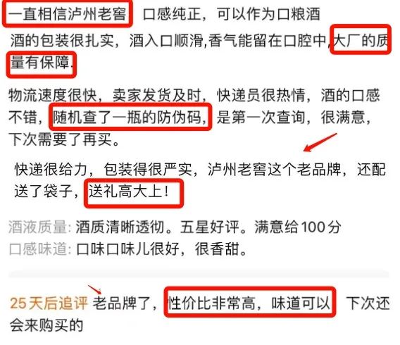 扫码价更是1288元,无论是自饮,还是送礼都更有面儿~现在,为了回馈粉丝的一年陪伴,现在购买特别给到了惊天薄利好价:基本就是平进平出的价格,而且这款酒每年就产那么点,市场上普遍都是一瓶难求的状态,我们也只有200箱,下次到货还不知道是啥时候,买到就赚到了,下单囤两箱,喝一整年好酒!看看咱们老泸州这一溜儿的好评,好酒,就是经得起市场的检验,经得起酒友的品鉴: 商城特惠价:268元起