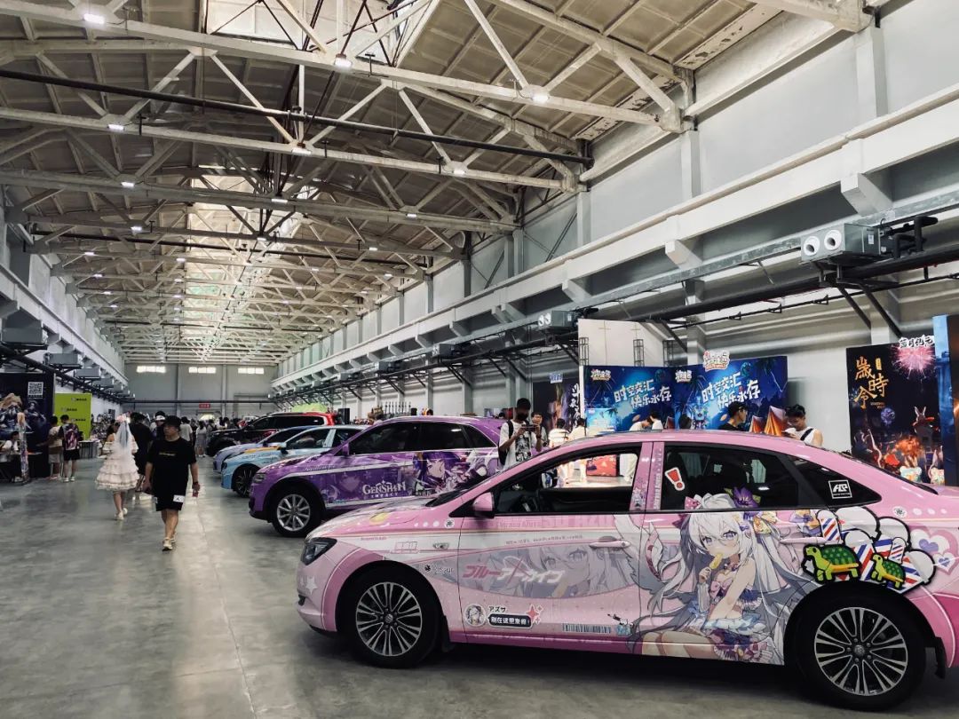 展会第二天开始就有痛车车展了!老二次元车主们纷纷秀出自己激推角色的主题车贴,把车开到场馆中央排列整齐,扛着设备的摄影师们在一旁指导coser摆造型,逛展的小哥哥小姐姐们穿着平时不太常见的三坑服饰穿梭其间......简直是太让本小普通饱眼福啦~